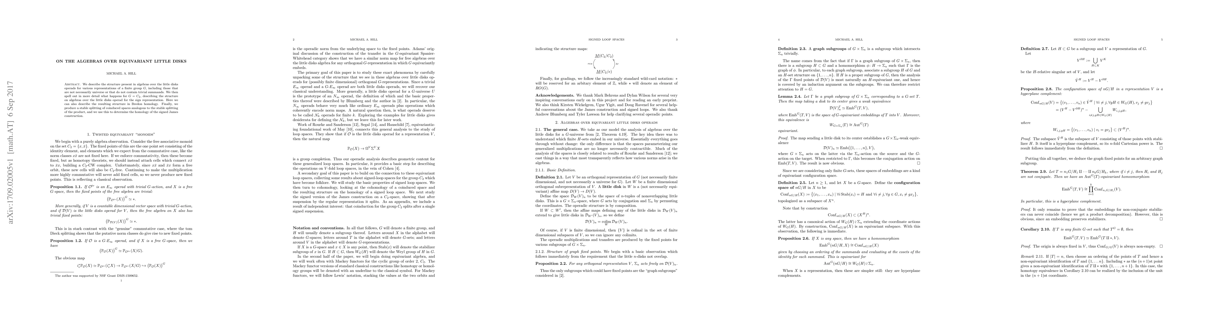 We describe the structure present in algebras over the little disks operads for various representations of a finite group $G$, including those that are not necessarily universe or that do not contain trivial summands. We then spell out in more detail what happens for $G=C_{2}$, describing the structure on algebras over the little disks operad for the sign representation. Here we can also describe the resulting structure in Bredon homology. Finally, we produce a stable splitting of coinduced spaces analogous to the stable splitting of the product, and we use this to determine the homology of the signed James construction.