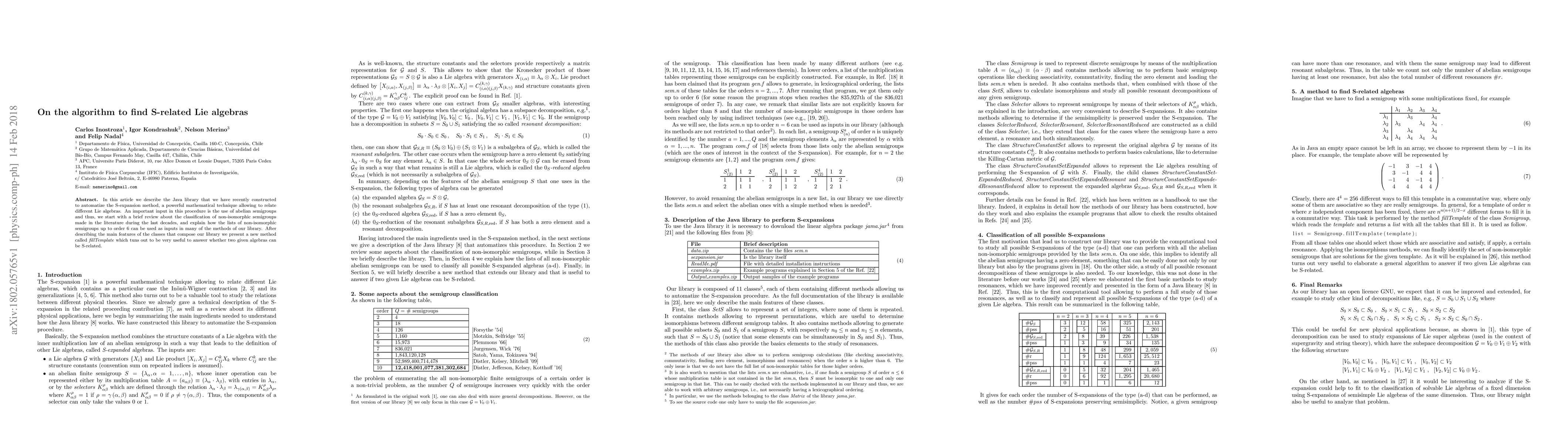 In this article we describe the Java library that we have recently constructed to automatize the S-expansion method, a powerful mathematical technique allowing to relate different Lie algebras. An important input in this procedure is the use of abelian semigroups and thus, we start with a brief review about the classification of non-isomorphic semigroups made in the literature during the last decades, and explain how the lists of non-isomorphic semigroups up to order 6 can be used as inputs in many of the methods of our library. After describing the main features of the classes that compose our library we present a new method called fillTemplate which tuns out to be very useful to answer whether two given algebras can be S-related.