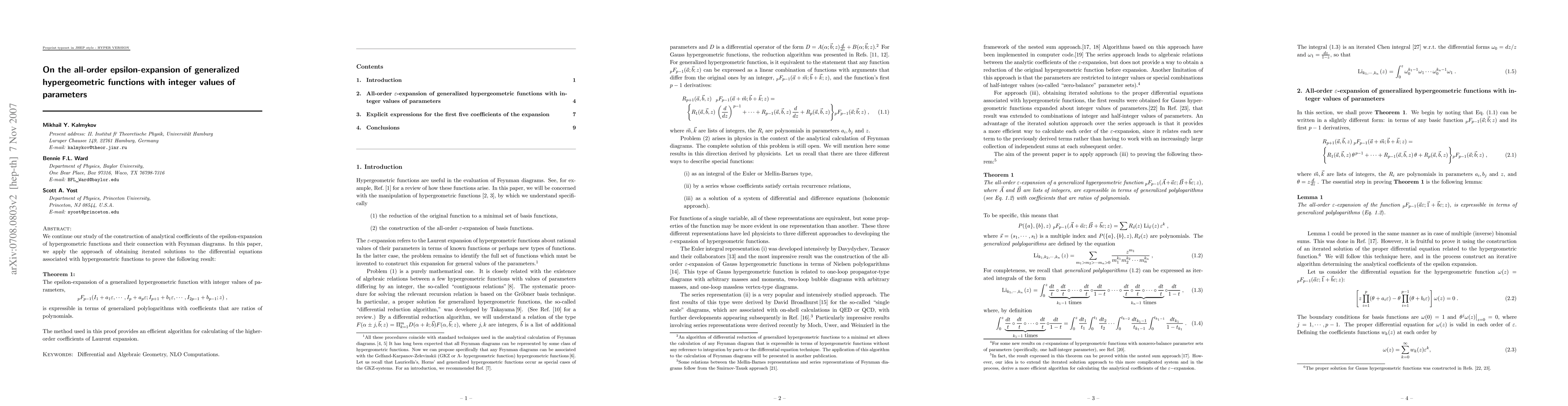 Two-line summary: This paper extends the study of epsilon-expansions of generalized hypergeometric functions, proving that such expansions can be expressed in terms of generalized polylogarithms with polynomial coefficient ratios. The methodology provides an efficient algorithm for calculating higher-order coefficients in the Laurent expansion, linking analytical coefficients with Feynman diagrams.