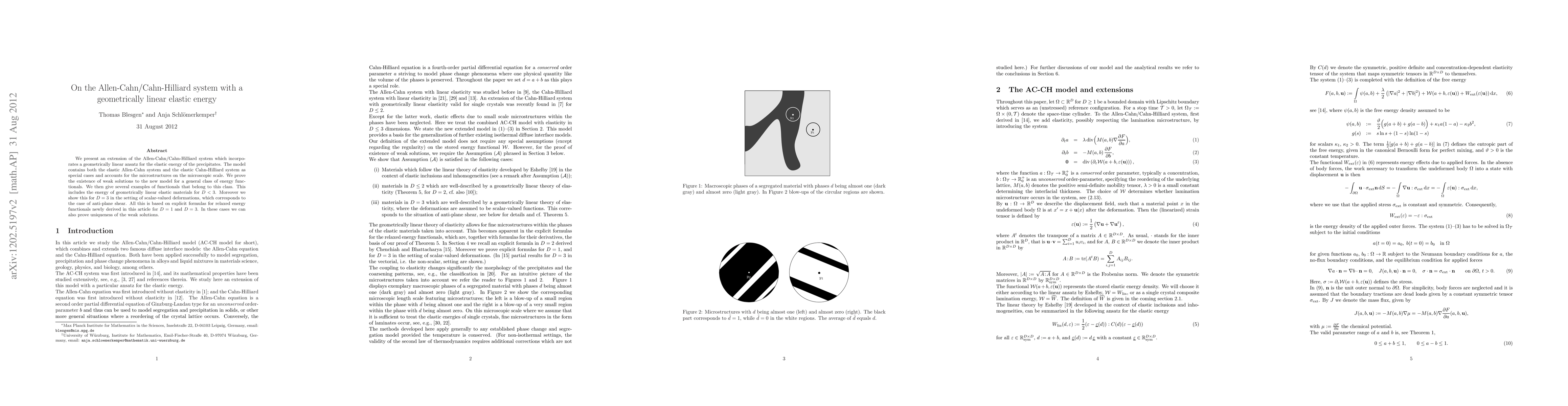 This paper extends the Allen-Cahn/Cahn-Hilliard system to include a geometrically linear elastic energy model for precipitates, proving the existence of weak solutions for a general class of energy functionals. It also provides explicit formulas for relaxed energy functionals and demonstrates uniqueness for specific cases.