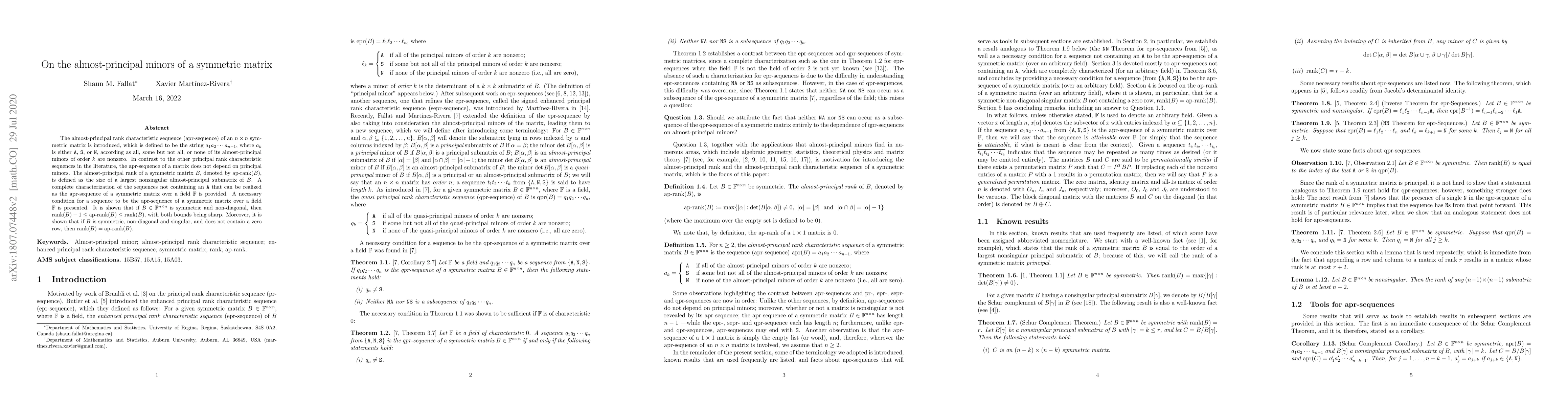 The paper presents a novel approach to understanding the rank of symmetric matrices through the lens of almost-principal minors, offering a fresh perspective distinct from existing epr-sequence research.
