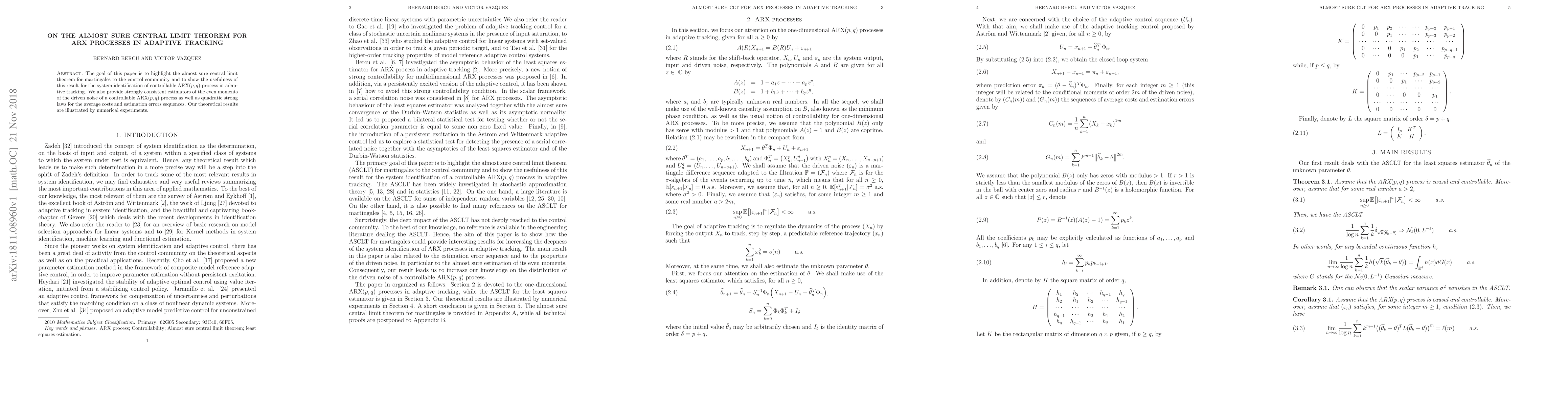 This paper demonstrates the application of the almost sure central limit theorem for martingales in adaptive tracking of ARX processes, providing strongly consistent estimators for noise moments and proving quadratic strong laws for cost and error sequences, supported by numerical experiments.