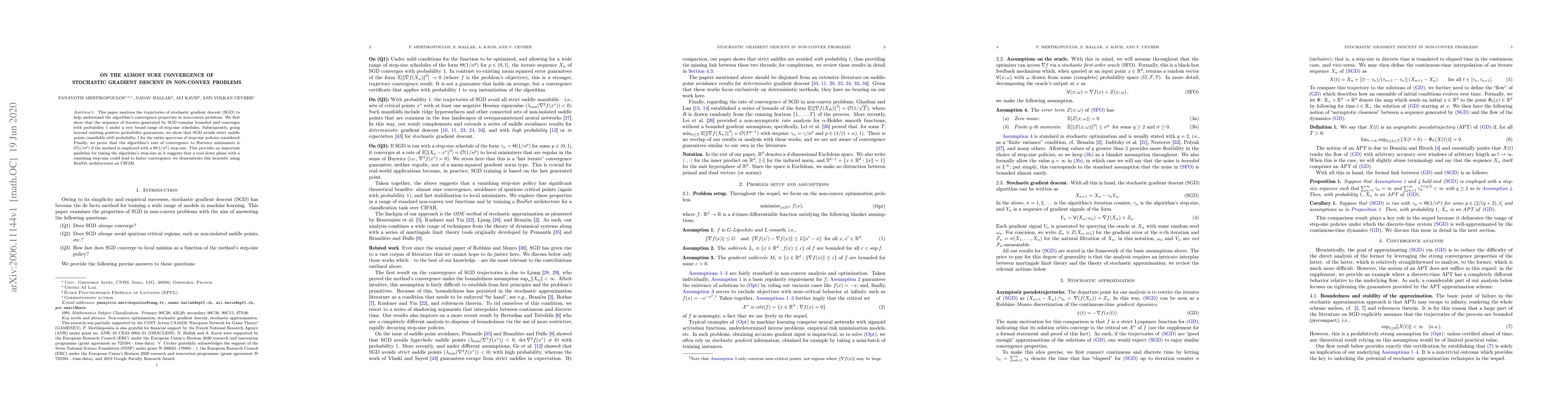 This paper analyzes the trajectories of stochastic gradient descent (SGD) to help understand the algorithm's convergence properties in non-convex problems. We first show that the sequence of iterates generated by SGD remains bounded and converges with probability $1$ under a very broad range of step-size schedules. Subsequently, going beyond existing positive probability guarantees, we show that SGD avoids strict saddle points/manifolds with probability $1$ for the entire spectrum of step-size policies considered. Finally, we prove that the algorithm's rate of convergence to Hurwicz minimizers is $\mathcal{O}(1/n^{p})$ if the method is employed with a $\Theta(1/n^p)$ step-size schedule. This provides an important guideline for tuning the algorithm's step-size as it suggests that a cool-down phase with a vanishing step-size could lead to faster convergence; we demonstrate this heuristic using ResNet architectures on CIFAR.