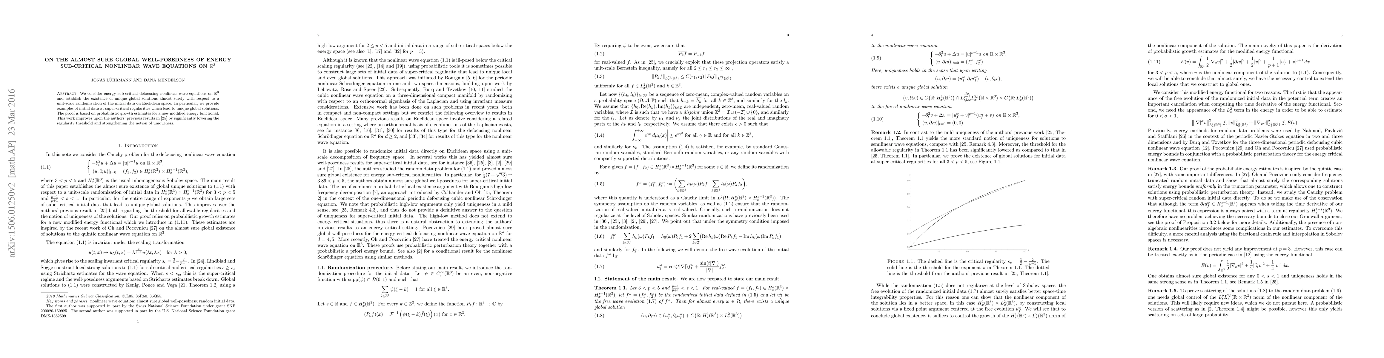 We consider energy sub-critical defocusing nonlinear wave equations on $\mathbb{R}^3$ and establish the existence of unique global solutions almost surely with respect to a unit-scale randomization of the initial data on Euclidean space. In particular, we provide examples of initial data at super-critical regularities which lead to unique global solutions. The proof is based on probabilistic growth estimates for a new modified energy functional. This work improves upon the authors' previous results in [25] by significantly lowering the regularity threshold and strengthening the notion of uniqueness.