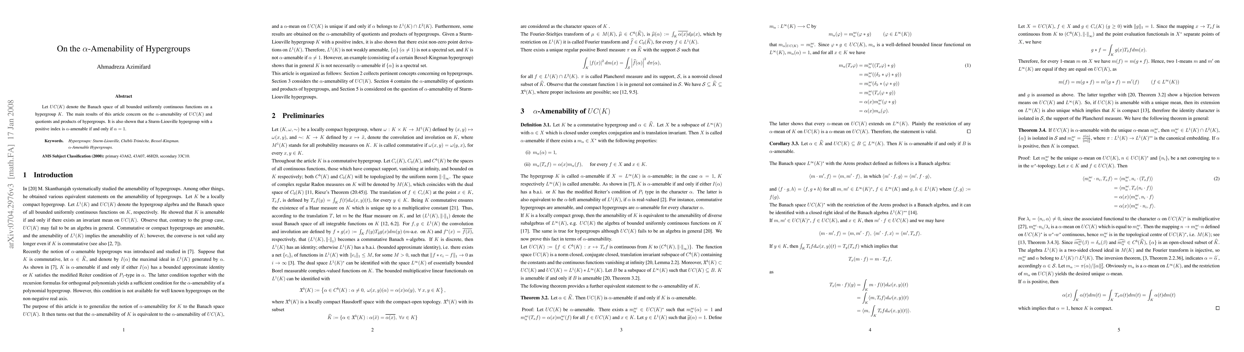 This paper investigates the $\alpha$-amenability of the Banach space $UC(K)$ of bounded uniformly continuous functions on a hypergroup $K$, focusing on quotients and products of hypergroups. It concludes that a Sturm-Liouville hypergroup with a positive index is $\alpha$-amenable only when $\alpha=1$.
