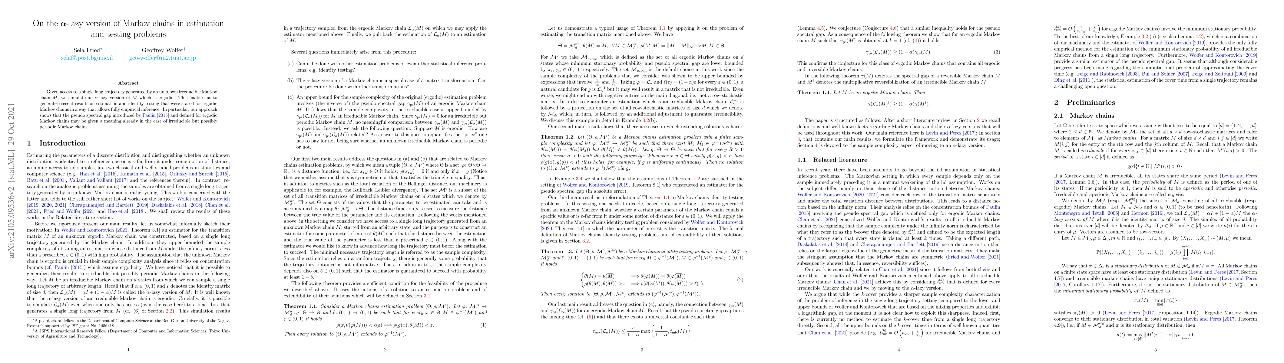 This paper introduces an $\alpha$-lazy version of Markov chains to generalize estimation and testing results for ergodic Markov chains, enabling fully empirical inference. It extends the pseudo spectral gap concept to irreducible but possibly periodic Markov chains.