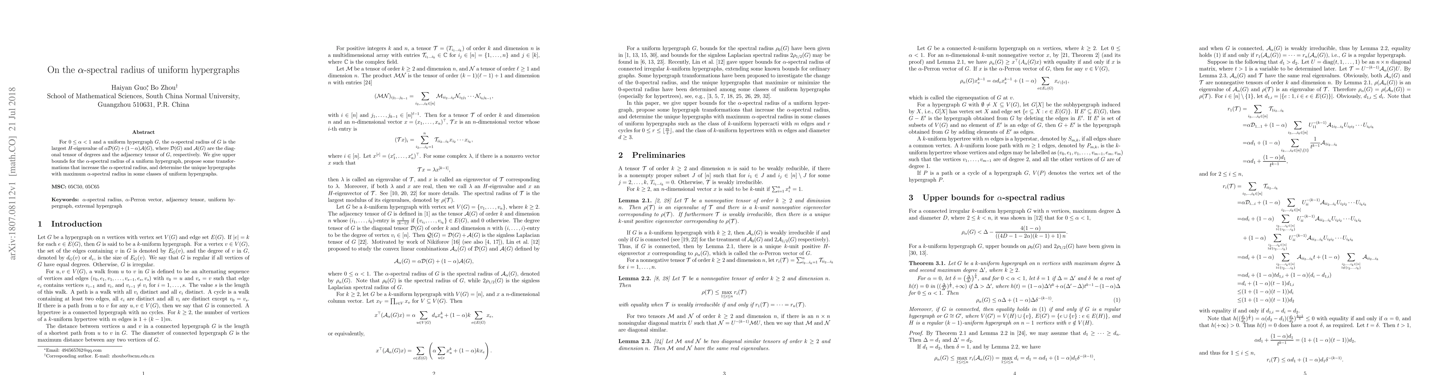 This paper studies the $\alpha$-spectral radius of uniform hypergraphs, providing upper bounds and identifying transformations that increase this value. It also determines which hypergraphs within specific classes achieve the maximum $\alpha$-spectral radius.