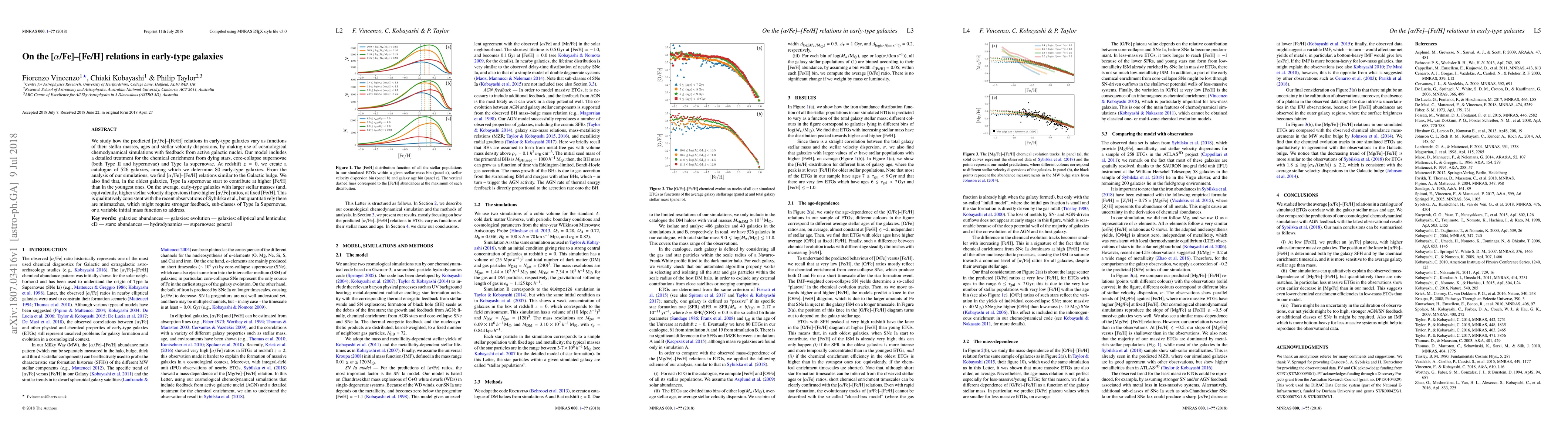 This study investigates the [$\alpha$/Fe]-[Fe/H] relations in early-type galaxies using cosmological simulations, finding similarities to the Galactic bulge and noting that older galaxies exhibit Type Ia supernovae contributions at higher [Fe/H]. Larger stellar mass galaxies show higher [$\alpha$/Fe] ratios, though quantitative discrepancies suggest potential areas for improvement in feedback mechanisms or stellar evolution models.