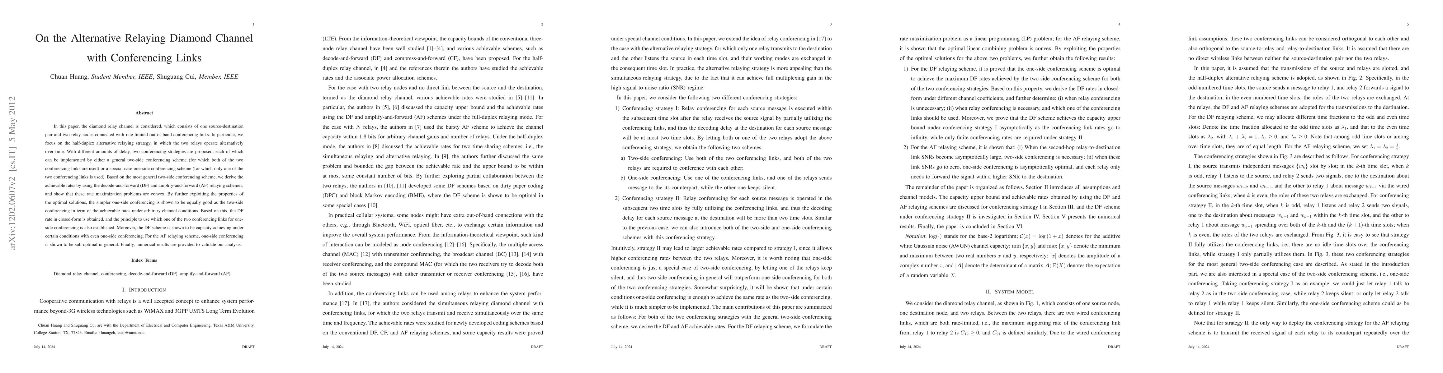 This paper explores the diamond relay channel with two relays and rate-limited conferencing links, focusing on half-duplex alternative relaying. It proposes two conferencing strategies and shows that a simpler one-side conferencing scheme can achieve the same performance as the more complex two-side scheme for decode-and-forward relaying, while one-side conferencing is generally sub-optimal for amplify-and-forward relaying.