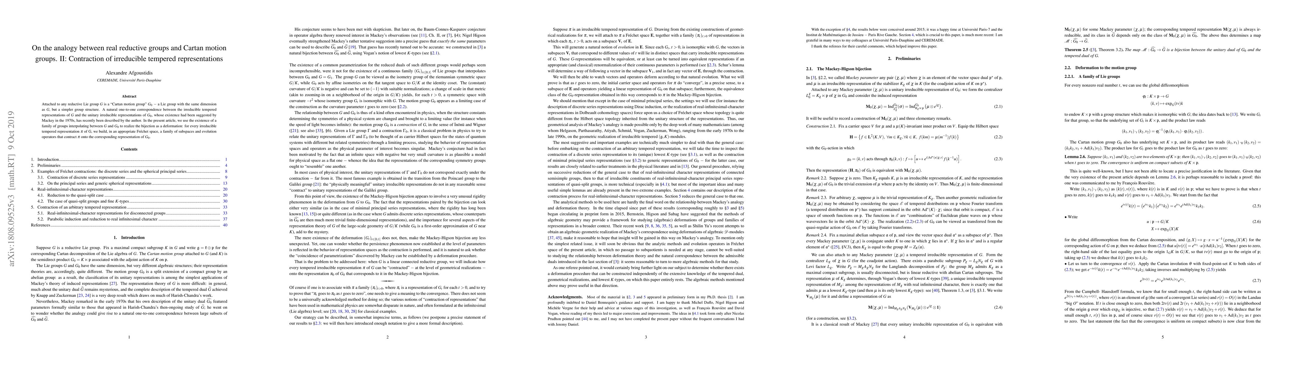 This paper explores the analogy between real reductive groups and Cartan motion groups by detailing the contraction of irreducible tempered representations of a reductive Lie group $G$ to the corresponding unitary irreducible representations of its simpler Cartan motion group $G_0$. It establishes a deformation process using a family of interpolating groups to realize the bijection between these representations.