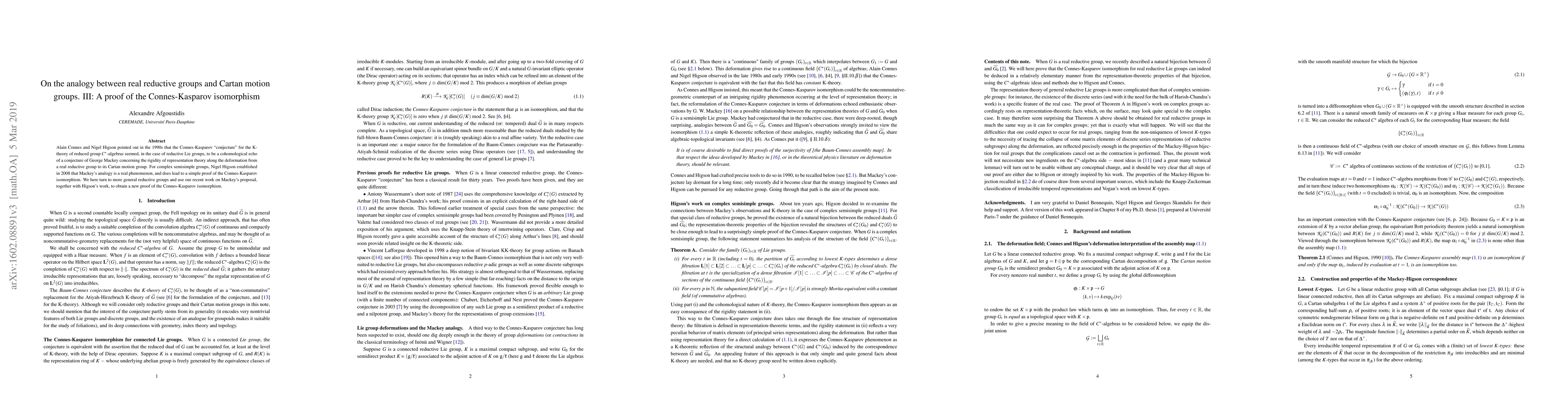 This paper provides a new proof of the Connes-Kasparov isomorphism for the K-theory of reduced $C^\ast$-algebras of reductive groups, leveraging the analogy between real reductive groups and Cartan motion groups established by Higson. It builds on Mackey's conjecture regarding the rigidity of representation theory.