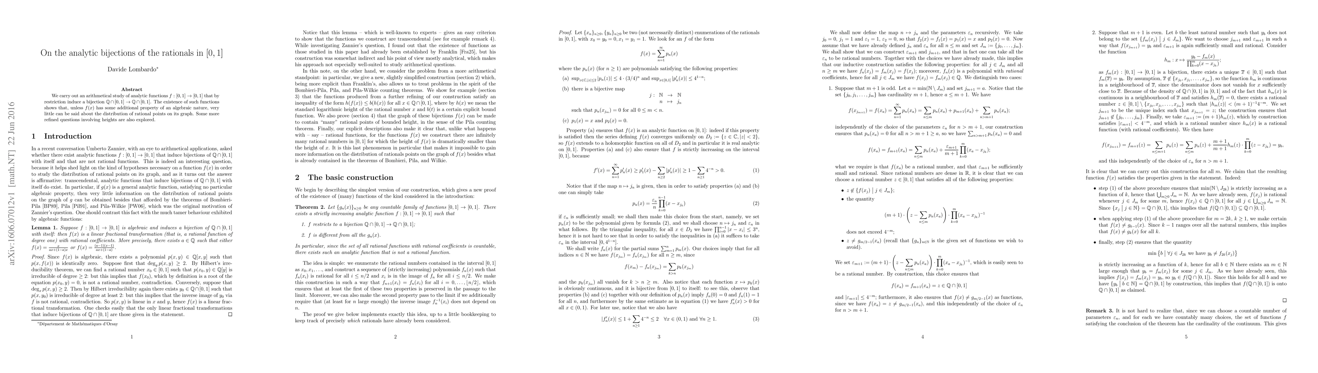The paper presents a constructive proof for the existence of analytic functions that induce bijections on rational points in [0,1], along with strengthened results involving uniform norms and slowly increasing functions.