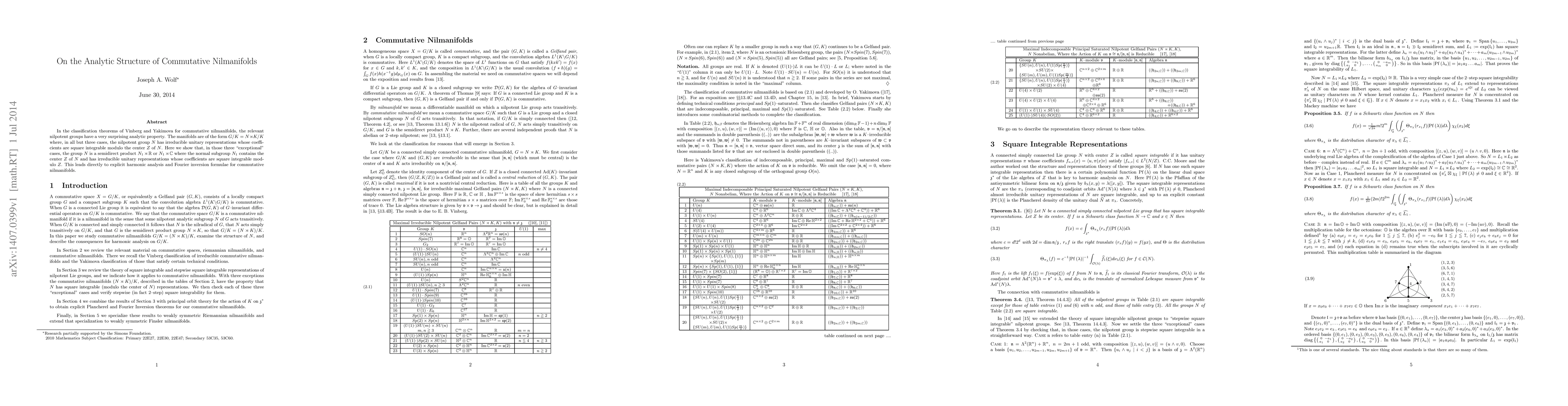 This paper classifies commutative nilmanifolds, revealing that most nilpotent groups have irreducible unitary representations with square integrable coefficients modulo their centers. For exceptional cases, it shows that the nilpotent groups are semidirect products involving $\mathbb{R}$ or $\mathbb{C}$, leading to explicit harmonic analysis and Fourier inversion formulae.