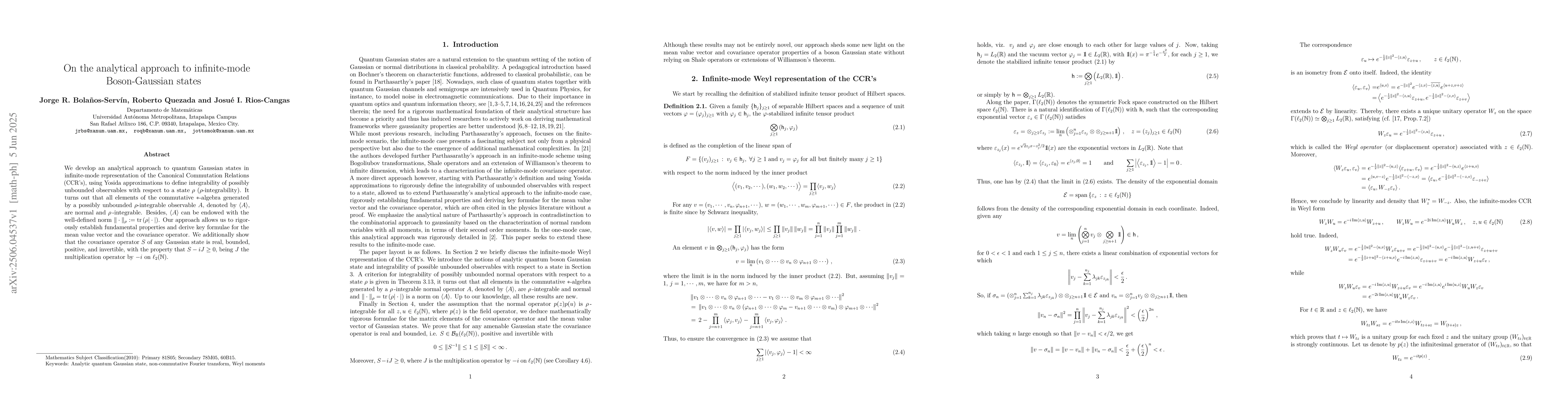 The introduction of a rigorous analytical framework for infinite-mode quantum Gaussian states using Yosida approximations and ρ-integrability.