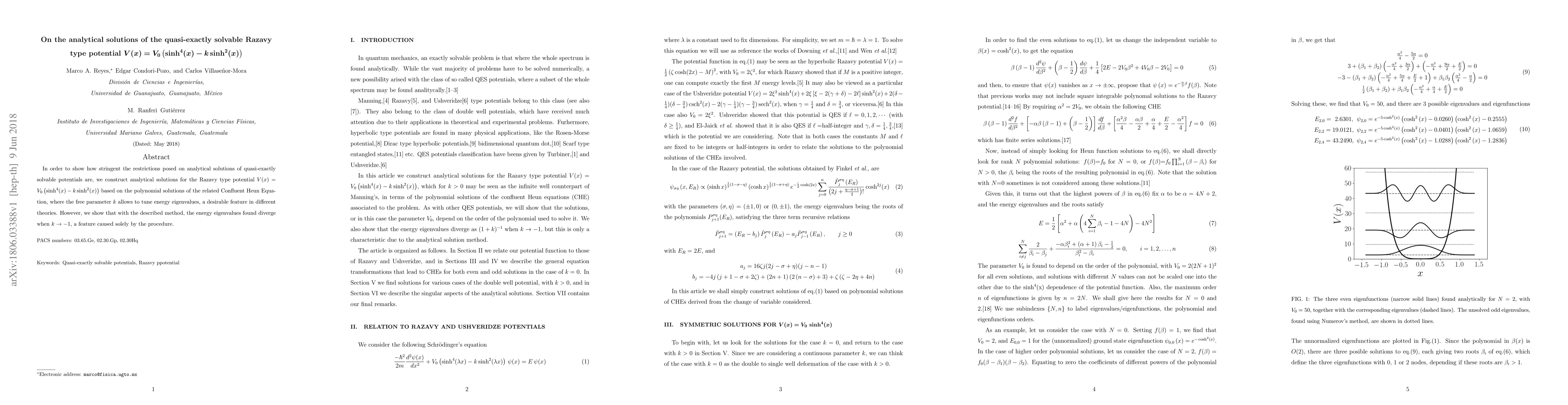 In order to show how stringent the restrictions posed on analytical solutions of quasi-exactly solvable potentials are, we construct analytical solutions for the Razavy type potential V(x) = Vo (sinh**4(x)-k sinh**2(x) ) based on the polynomial solutions of the related Confluent Heun Equation, where the free parameter k allows to tune energy eigenvalues, a desirable feature in different theories. However, we show that with the described method, the energy eigenvalues found diverge when k (goes to) -1, a feature caused solely by the procedure.