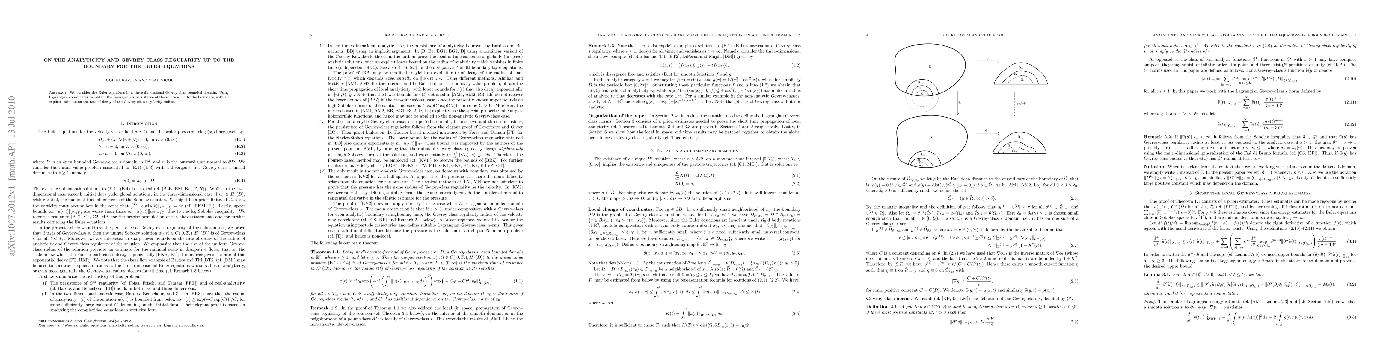 Summary: This paper investigates the Euler equations within a three-dimensional Gevrey-class bounded domain, demonstrating the persistence of Gevrey-class regularity up to the boundary and providing an explicit decay estimate for the Gevrey-class regularity radius.