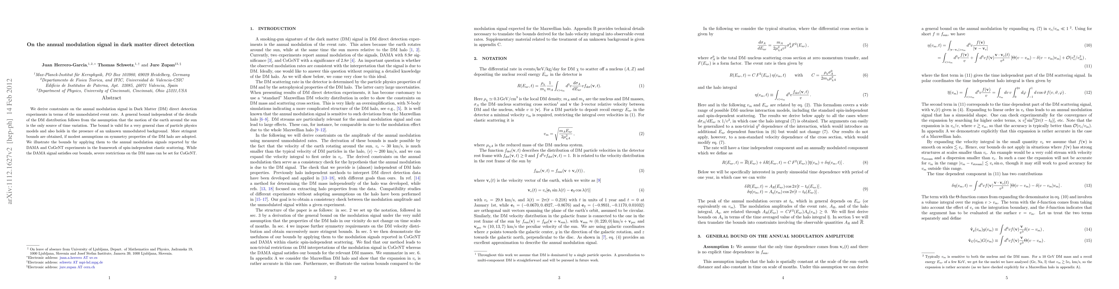 This paper derives constraints on the annual modulation signal in dark matter direct detection experiments, showing that stringent bounds can be set based on Earth's motion, applicable to various particle physics models. The DAMA experiment's signal aligns with these constraints, while CoGeNT faces more severe restrictions on dark matter mass.