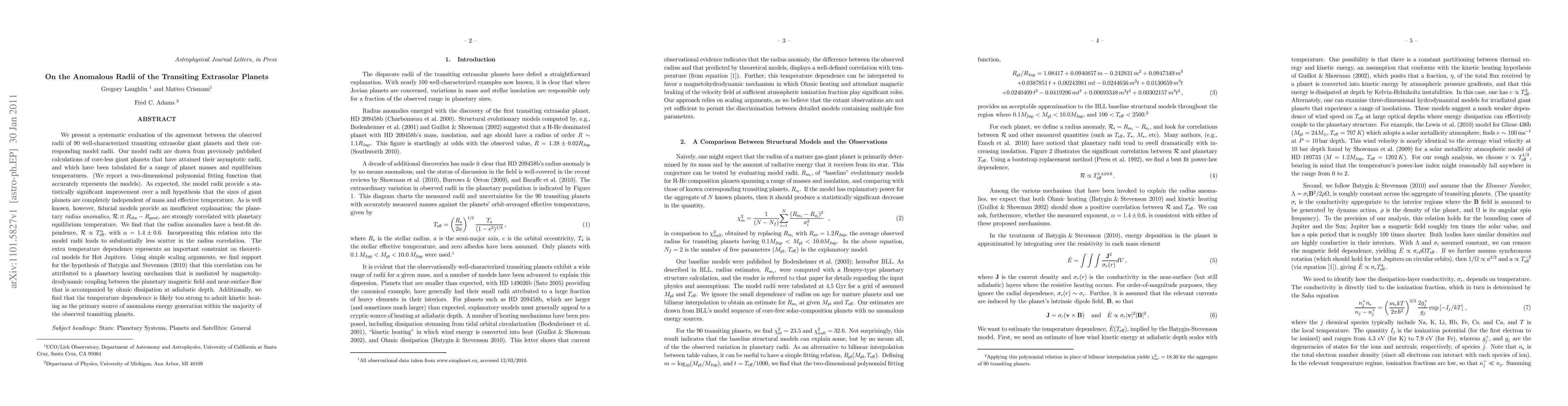 We present a systematic evaluation of the agreement between the observed radii of 90 well-characterized transiting extrasolar giant planets and their corresponding model radii. Our model radii are drawn from previously published calculations of core-less giant planets that have attained their asymptotic radii, and which have been tabulated for a range of planet masses and equilibrium temperatures. (We report a two-dimensional polynomial fitting function that accurately represents the models). As expected, the model radii provide a statistically significant improvement over a null hypothesis that the sizes of giant planets are completely independent of mass and effective temperature. As is well known, however, fiducial models provide an insufficient explanation; the planetary radius anomalies are strongly correlated with planetary equilibrium temperature. We find that the radius anomalies have a best-fit dependence, ${\cal R}\propto T_{\rm eff}^{\alpha}$, with $\alpha=1.4\pm0.6$. Incorporating this relation into the model radii leads to substantially less scatter in the radius correlation. The extra temperature dependence represents an important constraint on theoretical models for Hot Jupiters. Using simple scaling arguments, we find support for the hypothesis of Batygin and Stevenson (2010) that this correlation can be attributed to a planetary heating mechanism that is mediated by magnetohydrodynamic coupling between the planetary magnetic field and near-surface flow that is accompanied by ohmic dissipation at adiabatic depth. Additionally, we find that the temperature dependence is likely too strong to admit kinetic heating as the primary source of anomalous energy generation within the majority of the observed transiting planets.