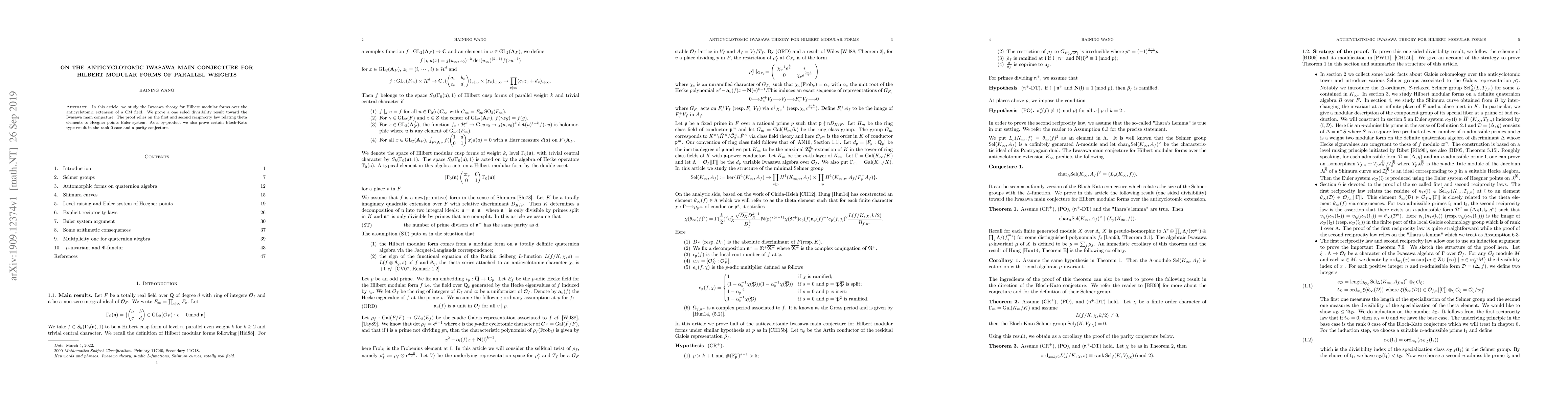 This paper investigates the Iwasawa theory for Hilbert modular forms over an anticyclotomic extension of a CM field, proving a one-sided divisibility result towards the Iwasawa main conjecture through the use of theta elements and Euler systems. Additionally, it establishes a Bloch-Kato type result in the rank 0 case and verifies a parity conjecture.