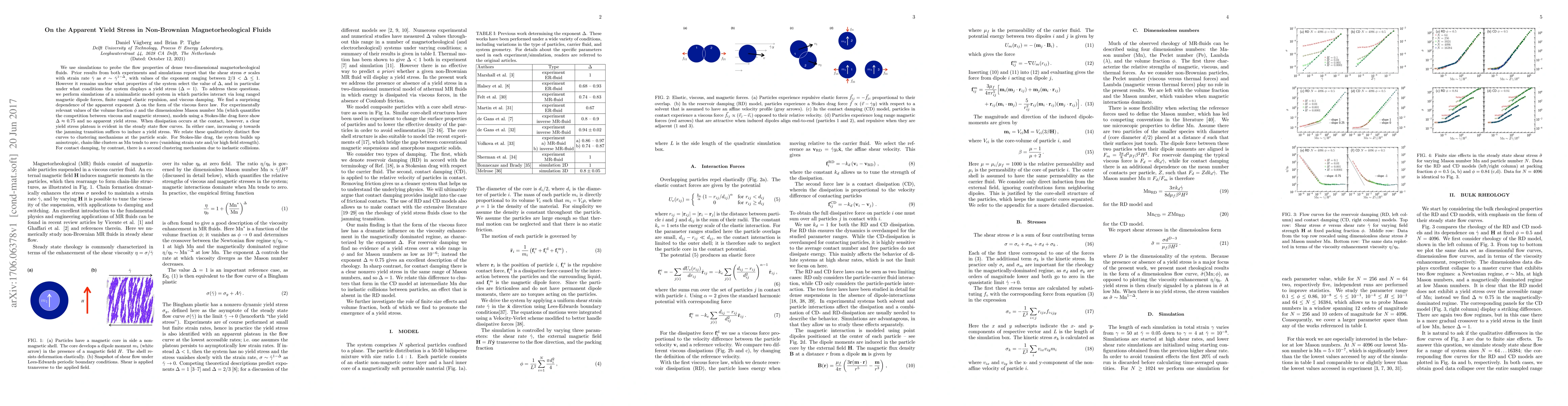 We use simulations to probe the flow properties of dense two-dimensional magnetorheological fluids. Prior results from both experiments and simulations report that the shear stress $\sigma$ scales with strain rate $\dot \gamma$ as $\sigma \sim \dot \gamma^{1-\Delta}$, with values of the exponent ranging between $2/3 <\Delta \le 1$. However it remains unclear what properties of the system select the value of $\Delta$, and in particular under what conditions the system displays a yield stress ($\Delta = 1$). To address these questions, we perform simulations of a minimalistic model system in which particles interact via long ranged magnetic dipole forces, finite ranged elastic repulsion, and viscous damping. We find a surprising dependence of the apparent exponent $\Delta$ on the form of the viscous force law. For experimentally relevant values of the volume fraction $\phi$ and the dimensionless Mason number (which quantifies the competition between viscous and magnetic stresses), models using a Stokes-like drag force show $\Delta \approx 0.75$ and no apparent yield stress. When dissipation occurs at the contact, however, a clear yield stress plateau is evident in the steady state flow curves. In either case, increasing $\phi$ towards the jamming transition suffices to induce a yield stress. We relate these qualitatively distinct flow curves to clustering mechanisms at the particle scale. For Stokes-like drag, the system builds up anisotropic, chain-like clusters as the Mason number tends to zero (vanishing strain rate and/or high field strength). For contact damping, by contrast, there is a second clustering mechanism due to inelastic collisions.