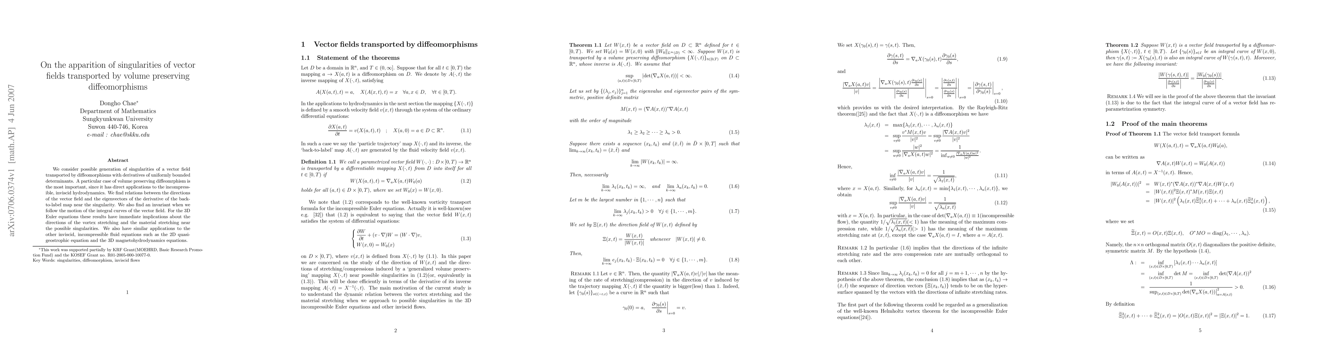 Researchers found a connection between vector fields transported by volume-preserving diffeomorphisms and their singularities, with implications for fluid dynamics equations like the 3D Euler equations.