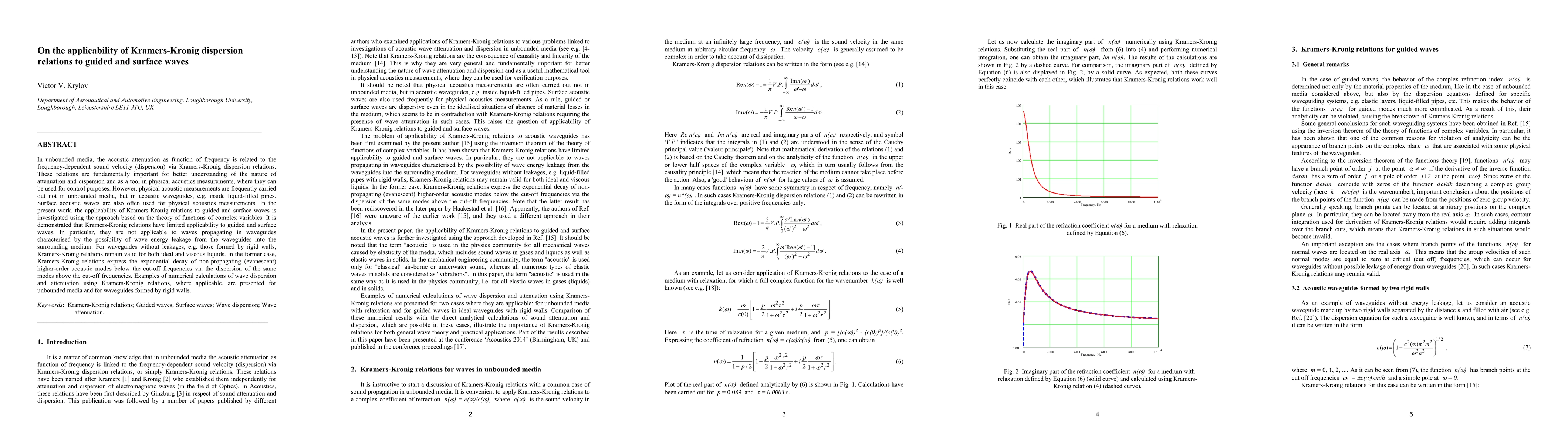 This paper investigates the applicability of Kramers-Kronig dispersion relations to guided and surface waves, finding limited applicability due to energy leakage in waveguides. For waveguides without leakage, such as those with rigid walls, the relations remain valid and can describe the attenuation and dispersion of acoustic modes.