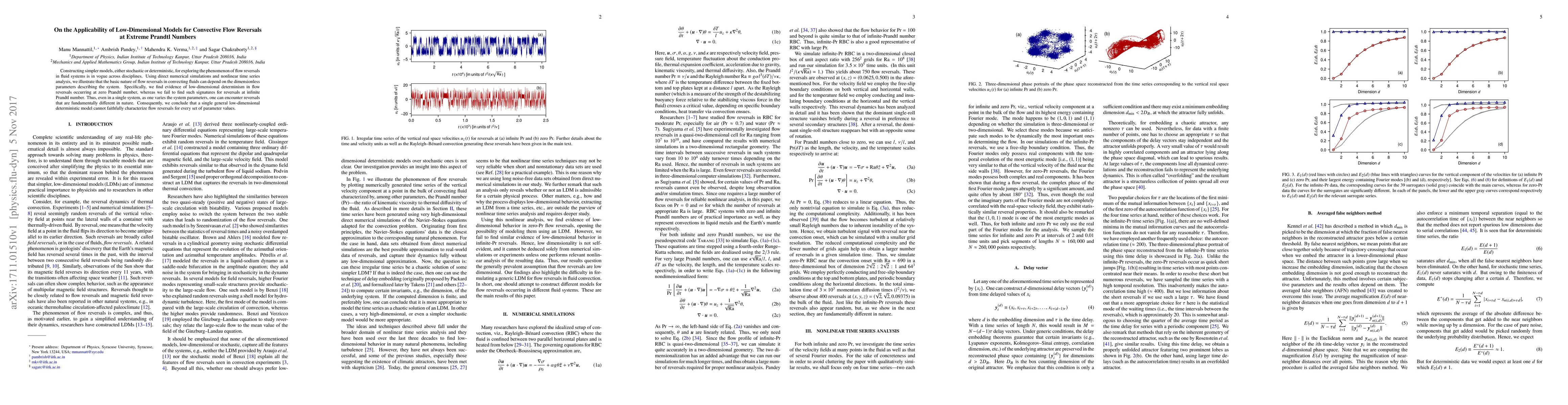 Constructing simpler models, either stochastic or deterministic, for exploring the phenomenon of flow reversals in fluid systems is in vogue across disciplines. Using direct numerical simulations and nonlinear time series analysis, we illustrate that the basic nature of flow reversals in convecting fluids can depend on the dimensionless parameters describing the system. Specifically, we find evidence of low-dimensional determinism in flow reversals occurring at zero Prandtl number, whereas we fail to find such signatures for reversals at infinite Prandtl number. Thus, even in a single system, as one varies the system parameters, one can encounter reversals that are fundamentally different in nature. Consequently, we conclude that a single general low-dimensional deterministic model cannot faithfully characterize flow reversals for every set of parameter values.