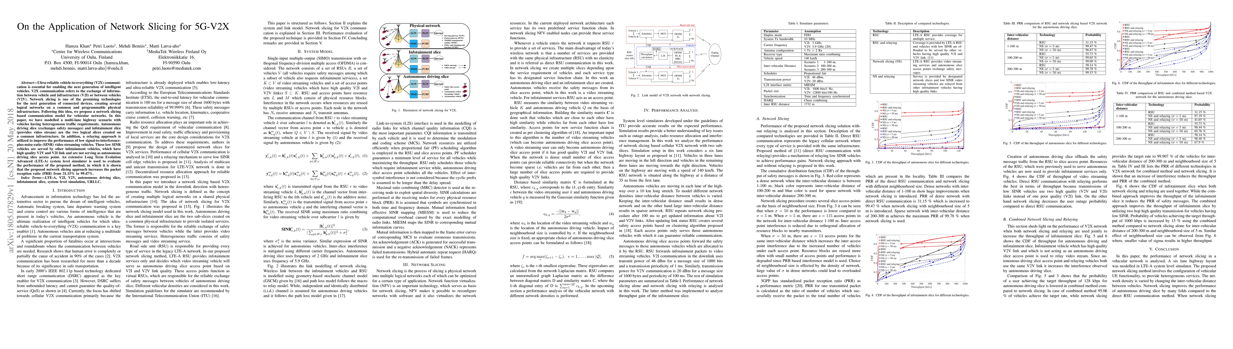 Ultra-reliable vehicle-to-everything (V2X) communication is essential for enabling the next generation of intelligent vehicles. V2X communication refers to the exchange of information between vehicle and infrastructure (V2I) or between vehicles (V2V). Network slicing is one of the promising technologies for the next generation of connected devices, creating several logical networks on a common and programmable physical infrastructure. Following this idea, we propose a network slicing based communication model for vehicular networks. In this paper, we have modelled a multi-lane highway scenario with vehicles having heterogeneous traffic requirements. Autonomous driving slice (exchanges safety messages) and infotainment slice (provides video stream) are the two logical slices created on a common infrastructure. In addition, a relaying approach is utilized to improve the performance of low signal-to-interferenceplus-noise-ratio (SINR) video streaming vehicles. These low SINR vehicles are served by other infotainment vehicles, which have high quality V2V and V2I link and are not serving as autonomous driving slice access point. An extensive Long Term Evolution Advanced (LTE-A) system level simulator is used to evaluate the performance of the proposed method, in which it is shown that the proposed network slicing approach increases the packet reception ratio (PRR) from 31.15% to 99.47%.