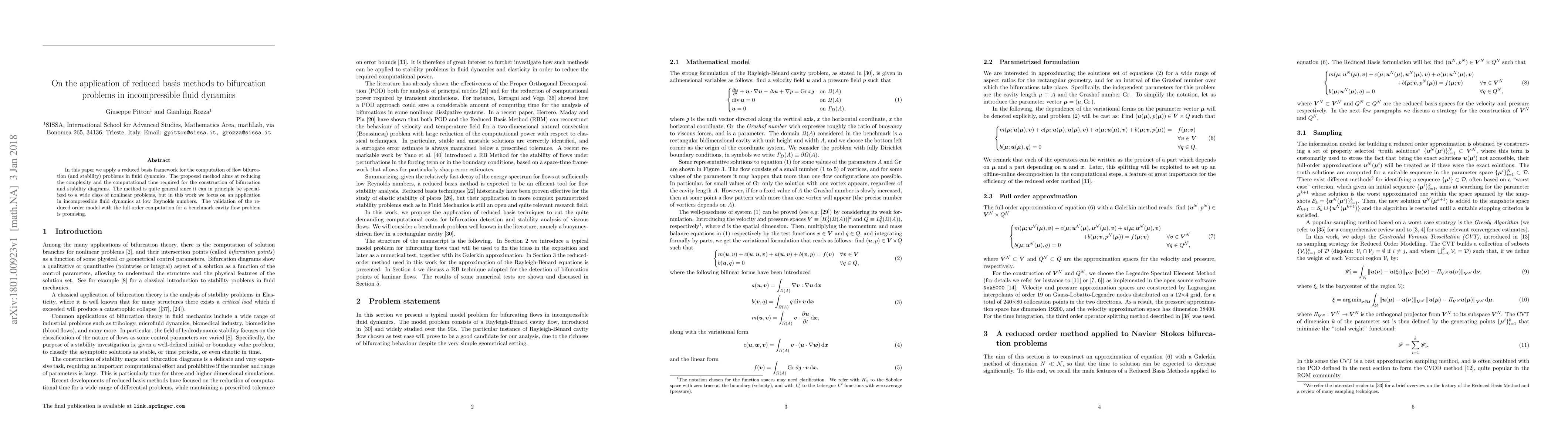 This paper introduces a reduced basis method for efficiently solving bifurcation and stability problems in incompressible fluid dynamics, significantly reducing computational complexity and time. The method is validated for a benchmark cavity flow problem, showing promising results.