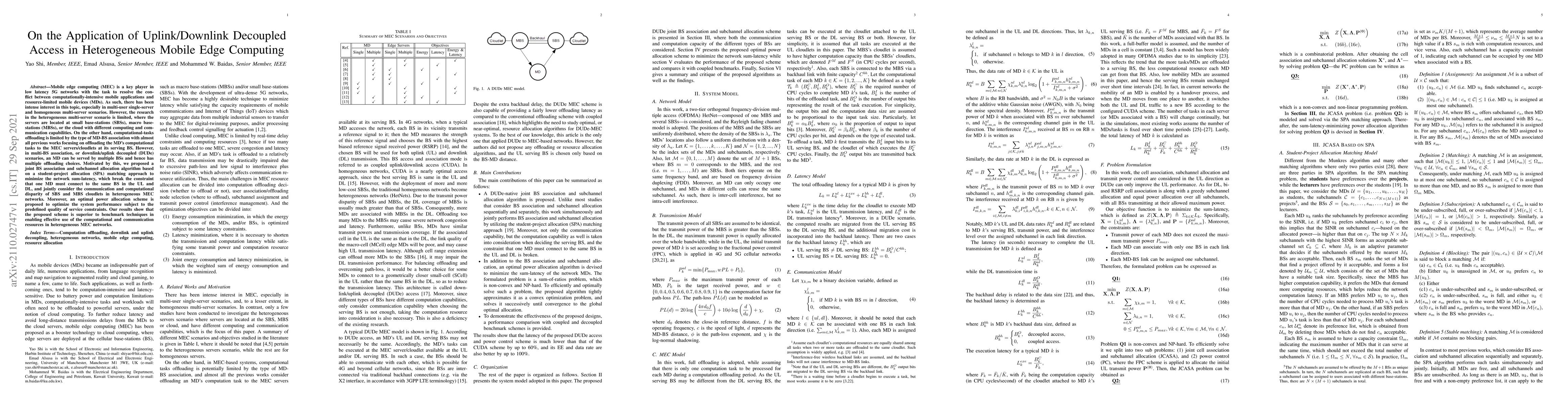 Mobile edge computing (MEC) is a key player in low latency 5G networks with the task to resolve the conflict between computationally-intensive mobile applications and resource-limited mobile devices (MDs). As such, there has been intense interest in this topic, especially in multi-user single-server and homogeneous multi-server scenarios. However, the research in the heterogeneous multi-server scenario is limited, where the servers are located at small base-stations (SBSs), macro base-stations (MBSs), or the cloud with different computing and communication capabilities. On the other hand, computational-tasks offloading is limited by the type of MD-BS association with almost all previous works focusing on offloading the MD's computational tasks to the MEC servers/cloudlets at its serving BS. However, in multi-BS association, or downlink/uplink decoupled (DUDe) scenarios, an MD can be served by multiple BSs and hence has multiple offloading choices. Motivated by this, we proposed a joint BS association and subchannel allocation algorithm based on a student-project allocation (SPA) matching approach to minimize the network sum-latency, which break the constraint that one MD must connect to the same BS in the UL and DL, and jointly consider the communication and computational disparity of SBS and MBS cloudlets in heterogeneous MEC networks. Moreover, an optimal power allocation scheme is proposed to optimize the system performance subject to the predefined quality of service constraints. Our results show that the proposed scheme is superior to benchmark techniques in enabling effective use of the computational and communication resources in heterogeneous MEC networks.