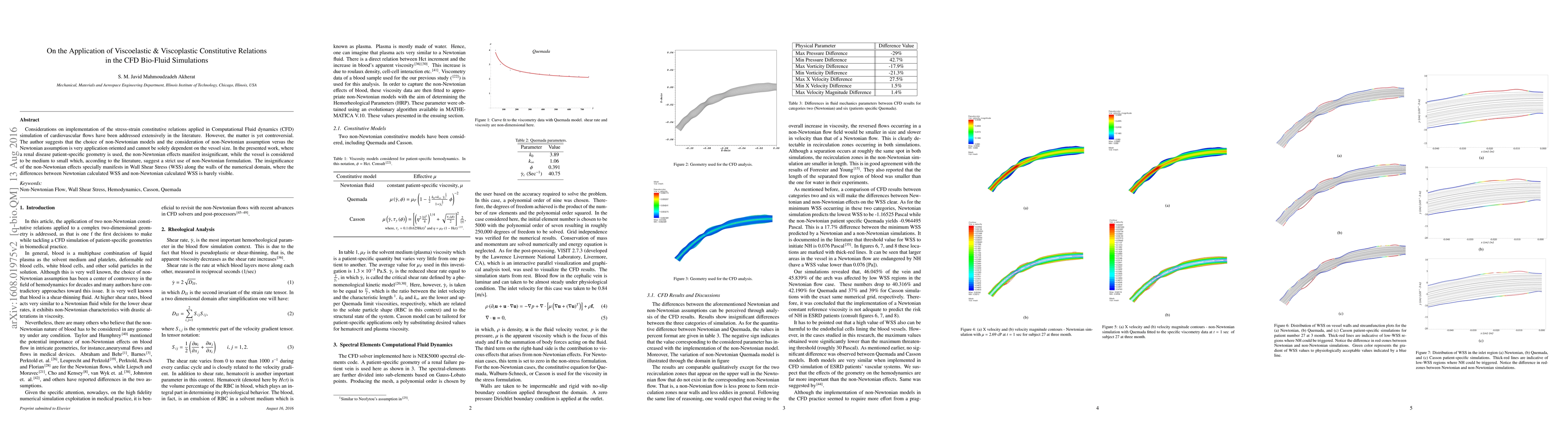 Considerations on implementation of the stress-strain constitutive relations applied in Computational Fluid dynamics (CFD) simulation of cardiovascular flows have been addressed extensively in the literature. However, the matter is yet controversial. The author suggests that the choice of non-Newtonian models and the consideration of non-Newtonian assumption versus the Newtonian assumption is very application oriented and cannot be solely dependent on the vessel size. In the presented work, where a renal disease patient-specific geometry is used, the non-Newtonian effects manifest insignificant, while the vessel is considered to be medium to small which, according to the literature, suggest a strict use of non-Newtonian formulation. The insignificance of the non-Newtonian effects specially manifests in Wall Shear Stress (WSS) along the walls of the numerical domain, where the differences between Newtonian calculated WSS and non-Newtonian calculated WSS is barely visible.