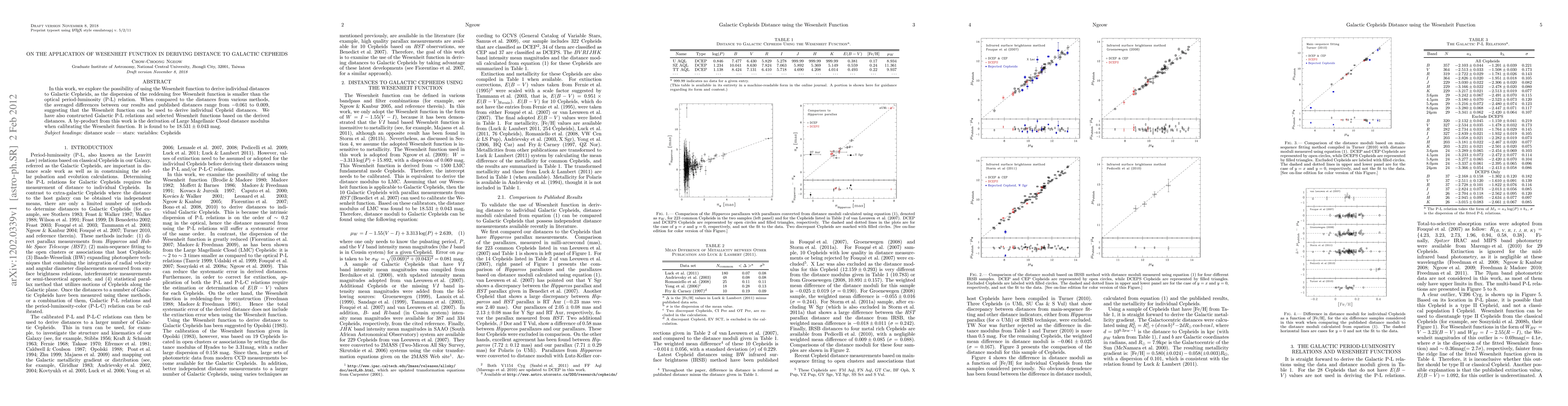 This paper investigates the use of the Wesenheit function to determine individual distances to Galactic Cepheids, finding it more precise than the traditional optical period-luminosity relation. The study confirms the Wesenheit function's potential by comparing results to various methods, yielding small averaged differences, and derives a Large Magellanic Cloud distance modulus of 18.531 ± 0.043 mag.