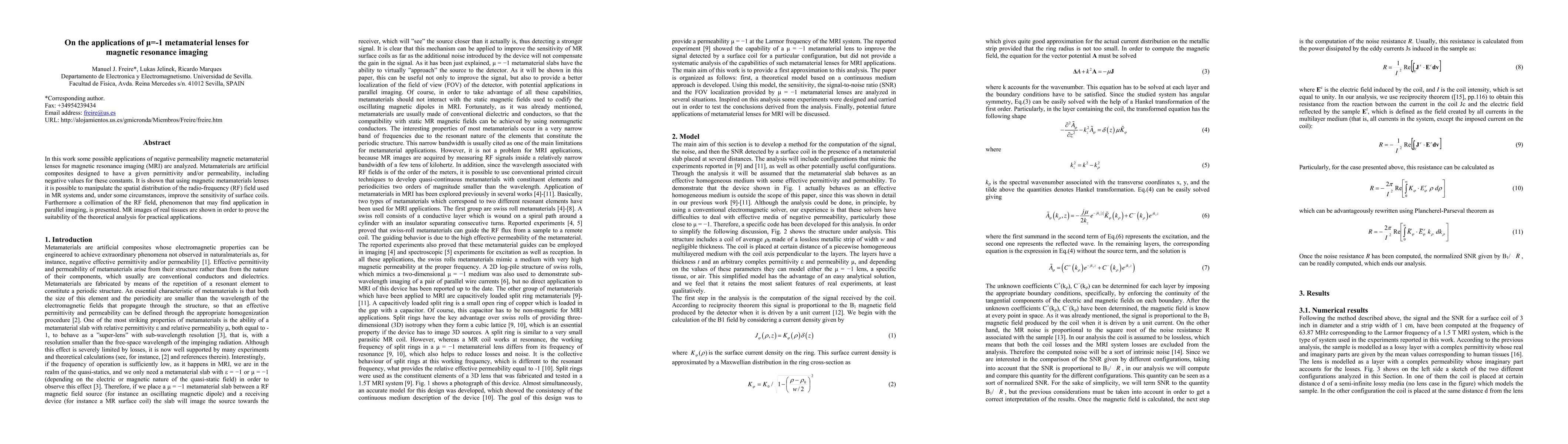 The design and fabrication of μ=-1 metamaterial lenses for MRI applications, which demonstrated improved SNR and spatial resolution.