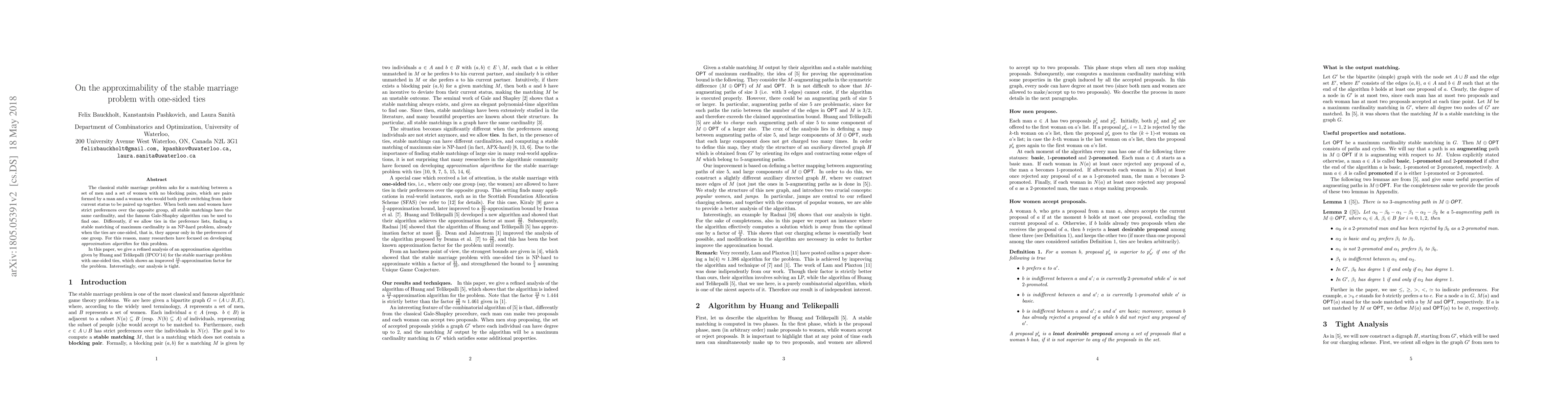 This paper refines the analysis of an approximation algorithm for the stable marriage problem with one-sided ties, improving the approximation factor to 13/9 and demonstrating that this bound is tight. The study addresses the NP-hard challenge of finding a stable matching when preferences include one-sided ties.