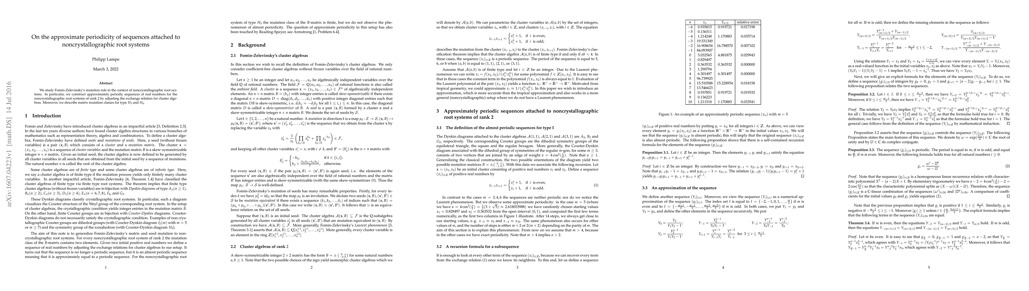 We study Fomin-Zelevinsky's mutation rule in the context of noncrystallographic root systems. In particular, we construct approximately periodic sequences of real numbers for the noncrystallographic root systems of rank 2 by adjusting the exchange relation for cluster algebras. Moreover, we describe matrix mutation classes for type H3 and H4.