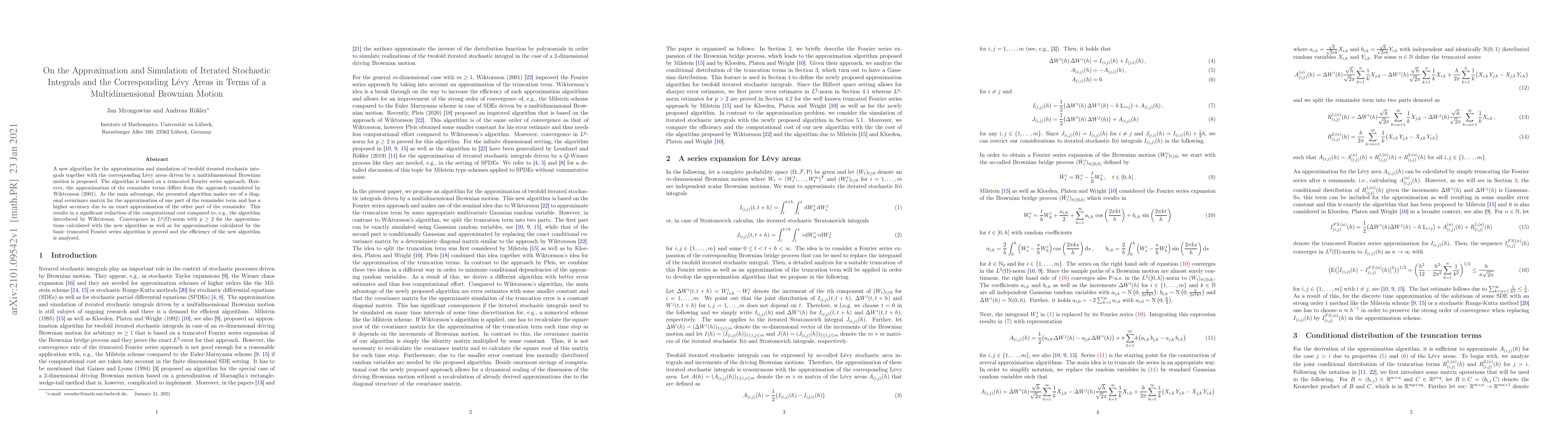 This paper proposes a new algorithm for approximating and simulating iterated stochastic integrals and Lévy areas driven by multidimensional Brownian motion, utilizing a truncated Fourier series approach. The algorithm achieves higher accuracy and lower computational costs compared to previous methods by employing a diagonal covariance matrix and exact approximation of remainder terms.
