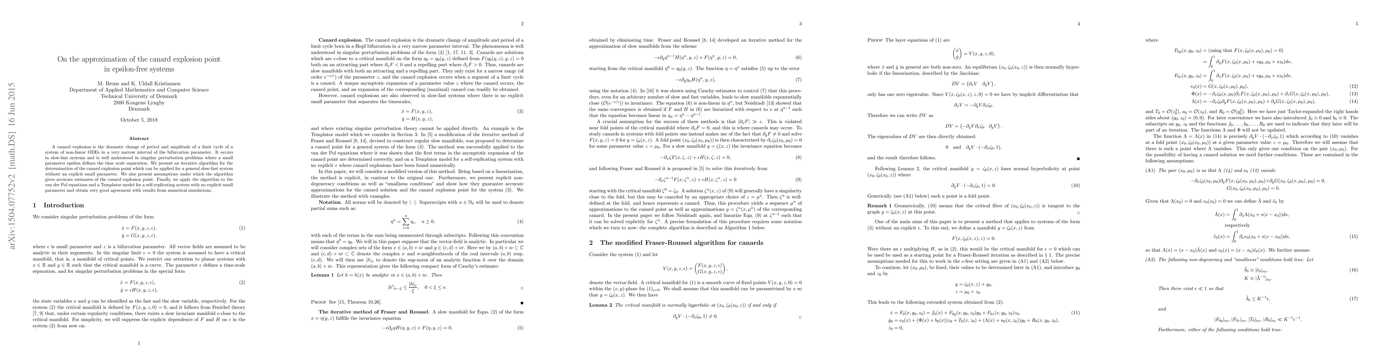 This paper introduces an iterative algorithm to determine the canard explosion point in slow-fast systems without an explicit small parameter, demonstrating its accuracy and application to the van der Pol equations and a Templator model. The algorithm provides accurate estimates in the absence of a defined epsilon, showing good agreement with numerical simulations.