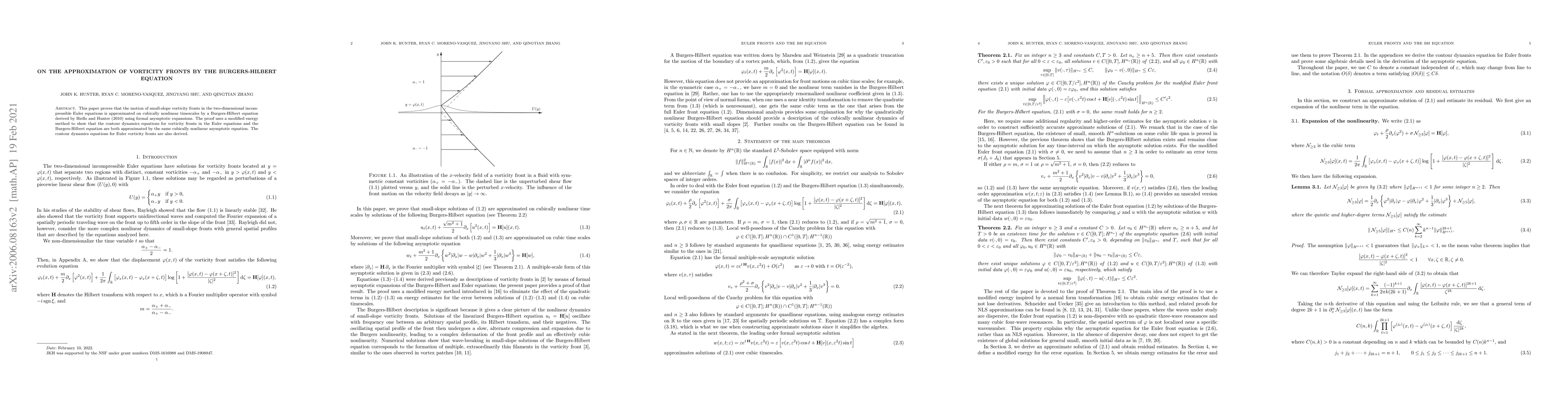 This paper demonstrates that small-slope vorticity fronts in the 2D incompressible Euler equations are approximated by the Burgers-Hilbert equation on cubically nonlinear timescales, using a modified energy method and formal asymptotic expansions. The study also derives the contour dynamics equations for Euler vorticity fronts.