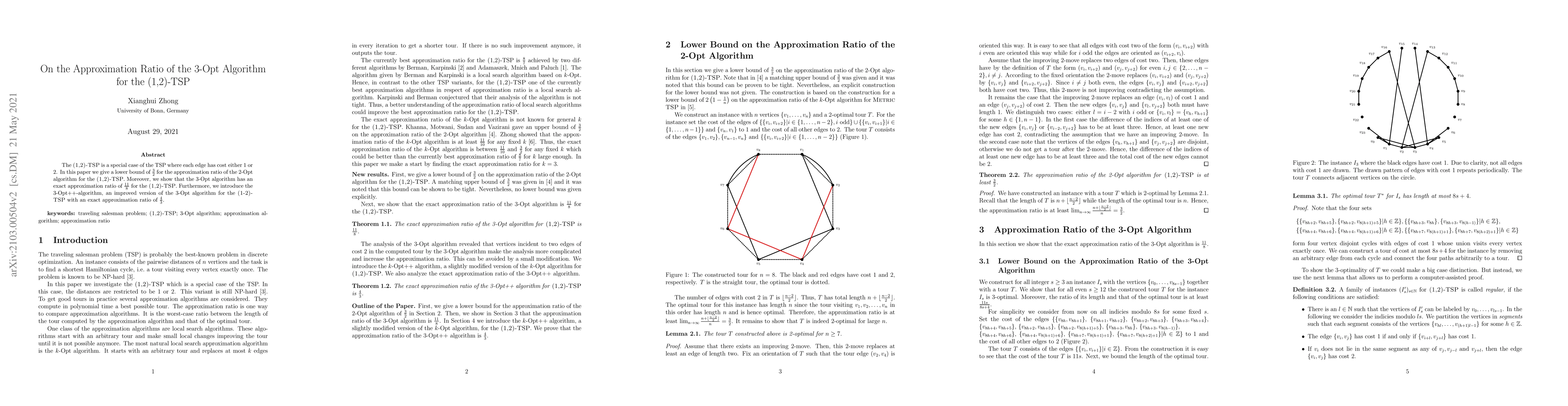 The (1,2)-TSP is a special case of the TSP where each edge has cost either 1 or 2. In this paper we give a lower bound of $\frac{3}{2}$ for the approximation ratio of the 2-Opt algorithm for the (1,2)-TSP. Moreover, we show that the 3-Opt algorithm has an exact approximation ratio of $\frac{11}{8}$ for the (1,2)-TSP. Furthermore, we introduce the 3-Opt++-algorithm, an improved version of the 3-Opt algorithm for the (1-2)-TSP with an exact approximation ratio of $\frac{4}{3}$.