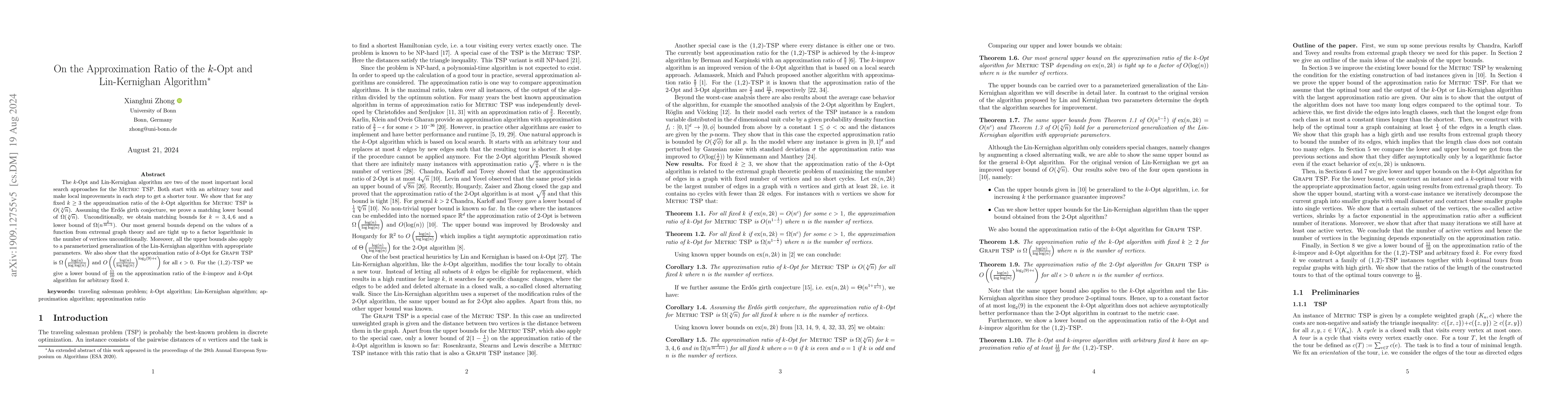 The $k$-Opt and Lin-Kernighan algorithm are two of the most important local search approaches for the Metric TSP. Both start with an arbitrary tour and make local improvements in each step to get a shorter tour. We show that for any fixed $k\geq 3$ the approximation ratio of the $k$-Opt algorithm for Metric TSP is $O(\sqrt[k]{n})$. Assuming the Erd\H{o}s girth conjecture, we prove a matching lower bound of $\Omega(\sqrt[k]{n})$. Unconditionally, we obtain matching bounds for $k=3,4,6$ and a lower bound of $\Omega(n^{\frac{2}{3k-3}})$. Our most general bounds depend on the values of a function from extremal graph theory and are tight up to a factor logarithmic in the number of vertices unconditionally. Moreover, all the upper bounds also apply to a parameterized version of the Lin-Kernighan algorithm with appropriate parameters. We also show that the approximation ratio of $k$-Opt for Graph TSP is $\Omega\left(\frac{\log(n)}{\log\log(n)}\right)$ and $O\left(\left(\frac{\log(n)}{\log\log(n)}\right)^{\log_2(9)+\epsilon}\right)$ for all $\epsilon>0$. For the (1,2)-TSP we give a lower bound of $\frac{11}{10}$ on the approximation ratio of the $k$-improv and $k$-Opt algorithm for arbitrary fixed $k$.