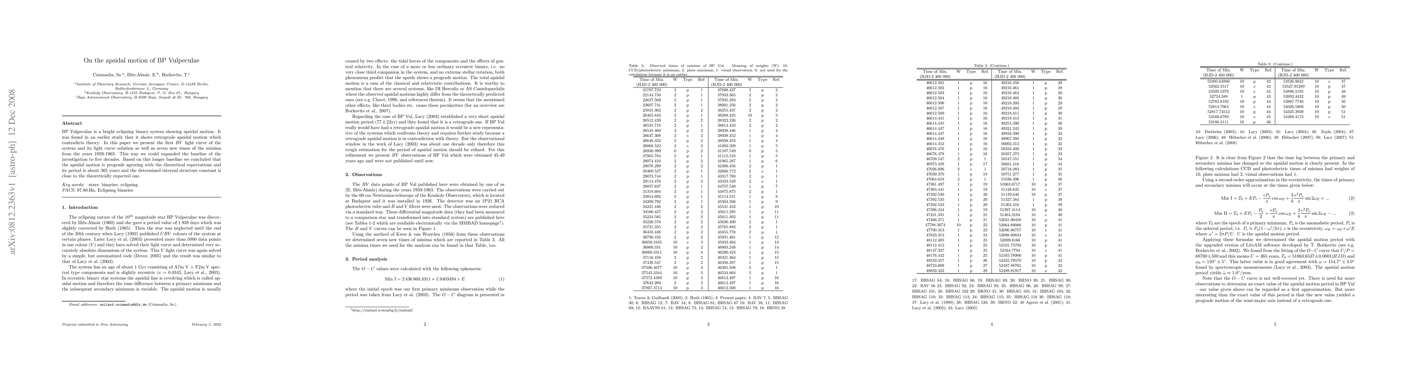 This study reevaluates BP Vulpecululae, an eclipsing binary with previously observed retrograde apsidal motion, a contradiction to theory. By presenting the first BV light curve and seven new minima times from 1959-1963, the authors extend their investigation to five decades. They now confirm prograde apsidal motion, in line with theory, with a period of about 365 years and an internal structure constant close to theoretical expectations.