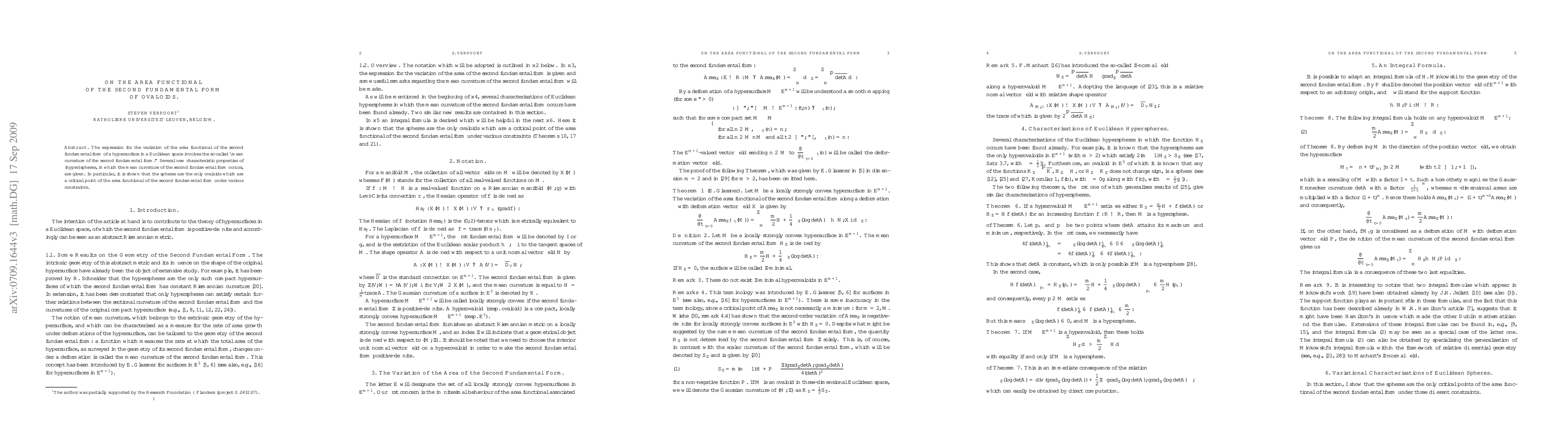 This paper explores the variation of the area functional of the second fundamental form for hypersurfaces in Euclidean space, introducing the concept of "mean curvature of the second fundamental form." It reveals that spheres are the only ovaloids that serve as critical points of this functional under various constraints.