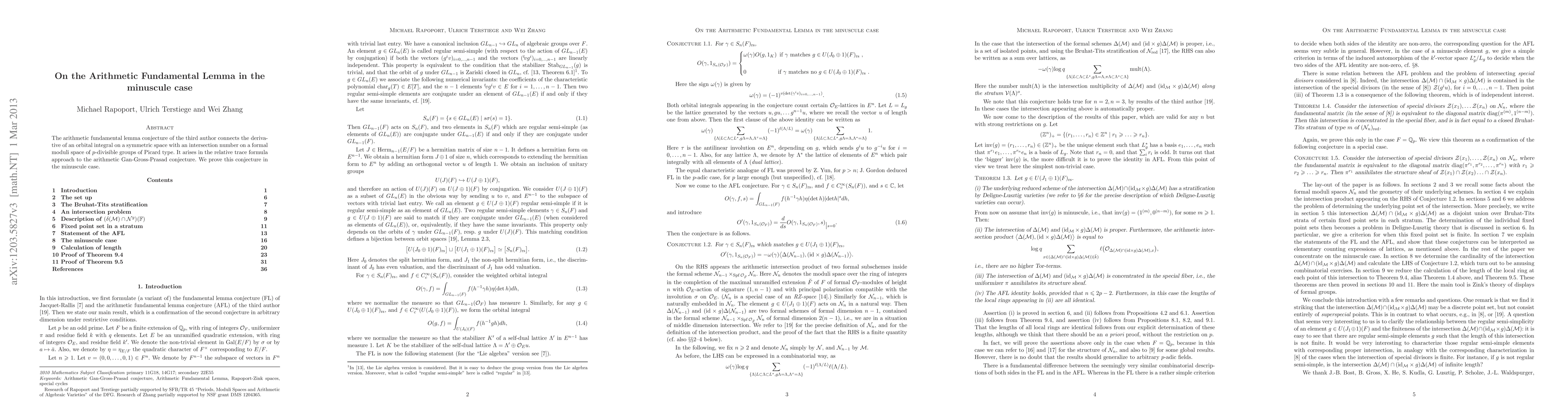 This paper proves the arithmetic fundamental lemma conjecture for the minuscule case, linking the derivative of an orbital integral with an intersection number on a formal moduli space of $p$-divisible groups, relevant to the relative trace formula approach for the Gan-Gross-Prasad conjecture.