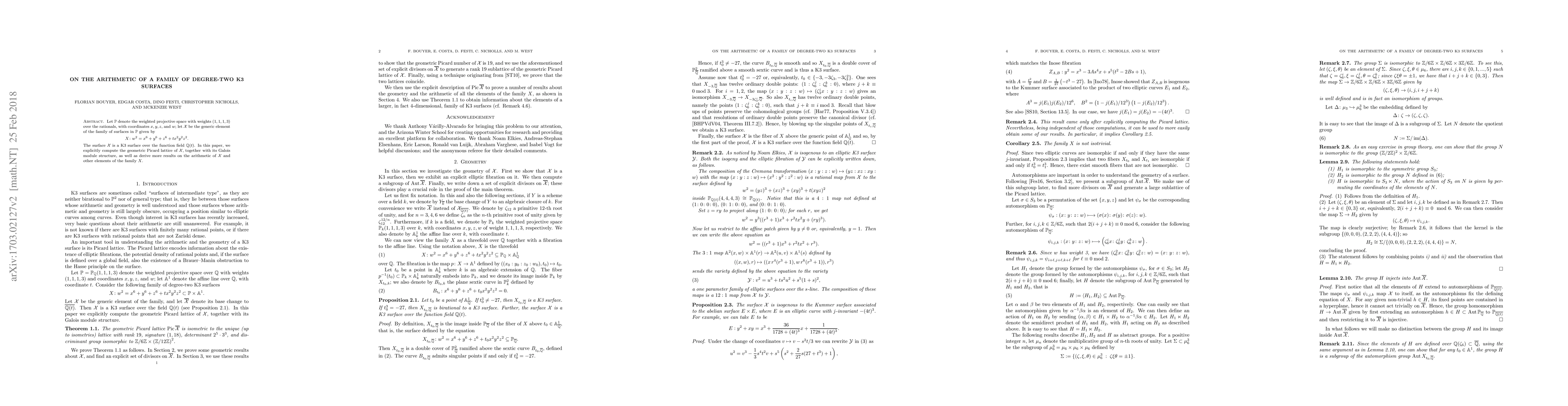 This paper computes the geometric Picard lattice and Galois module structure of a specific K3 surface, X, defined in a weighted projective space over rationals. It also provides further insights into the arithmetic properties of X and its family.