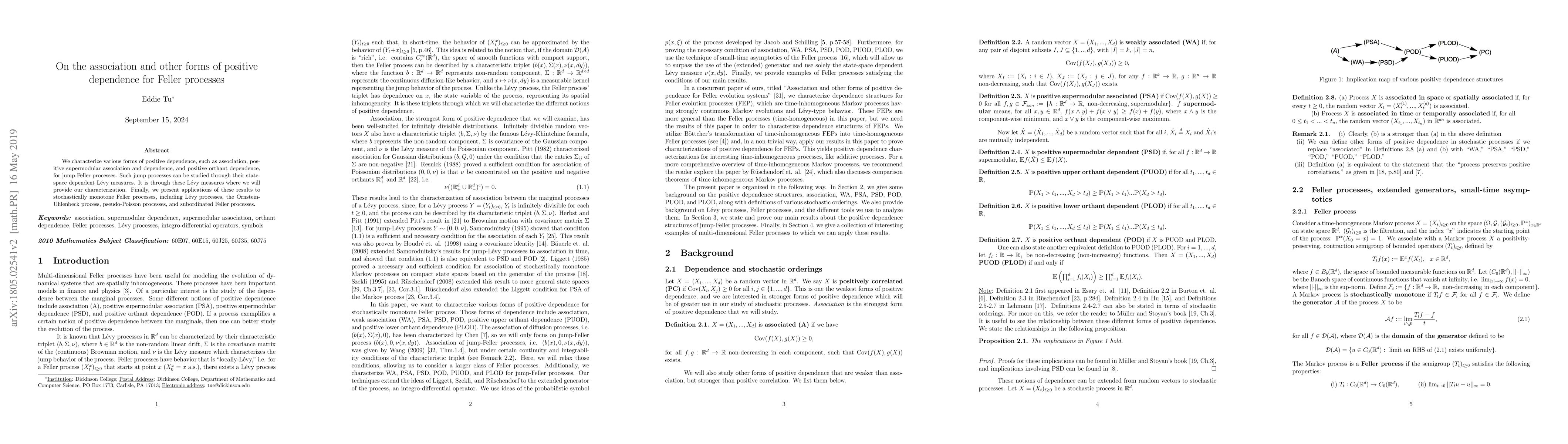 We characterize various forms of positive dependence, such as association, positive supermodular association and dependence, and positive orthant dependence, for jump-Feller processes. Such jump processes can be studied through their state-space dependent Levy measures. It is through these Levy measures where we will provide our characterization. Finally, we present applications of these results to stochastically monotone Feller processes, including Levy processes, the Ornstein-Uhlenbeck process, pseudo-Poisson processes, and subordinated Feller processes.
