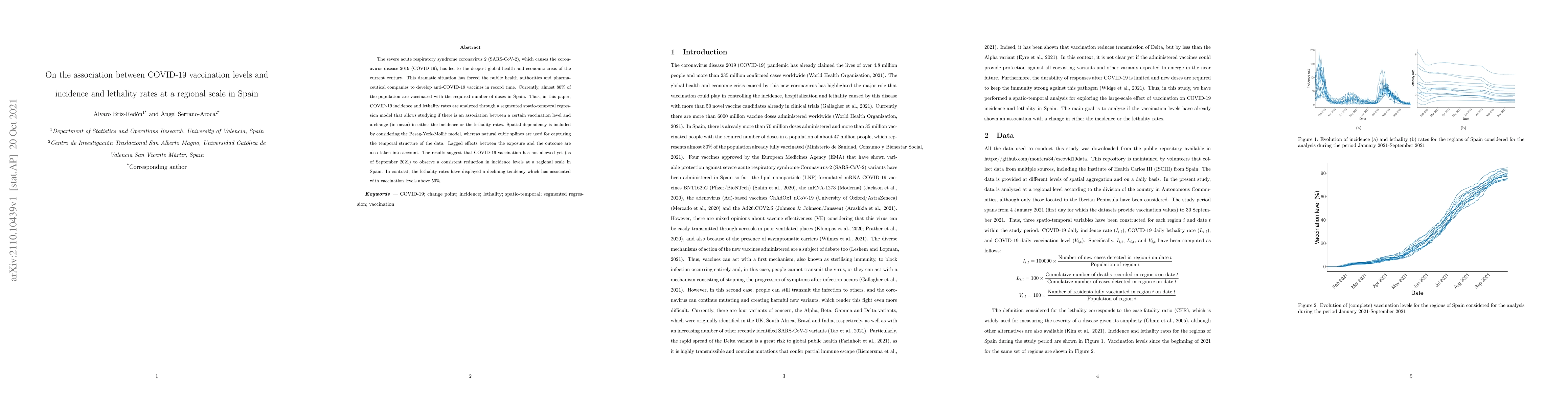 The severe acute respiratory syndrome coronavirus 2 (SARS-CoV-2), which causes the coronavirus disease 2019 (COVID-19), has led to the deepest global health and economic crisis of the current century. This dramatic situation has forced the public health authorities and pharmaceutical companies to develop anti-COVID-19 vaccines in record time. Currently, almost 80% of the population are vaccinated with the required number of doses in Spain. Thus, in this paper, COVID-19 incidence and lethality rates are analyzed through a segmented spatio-temporal regression model that allows studying if there is an association between a certain vaccination level and a change (in mean) in either the incidence or the lethality rates. Spatial dependency is included by considering the Besag-York-Molli\'e model, whereas natural cubic splines are used for capturing the temporal structure of the data. Lagged effects between the exposure and the outcome are also taken into account. The results suggest that COVID-19 vaccination has not allowed yet (as of September 2021) to observe a consistent reduction in incidence levels at a regional scale in Spain. In contrast, the lethality rates have displayed a declining tendency which has associated with vaccination levels above 50%.