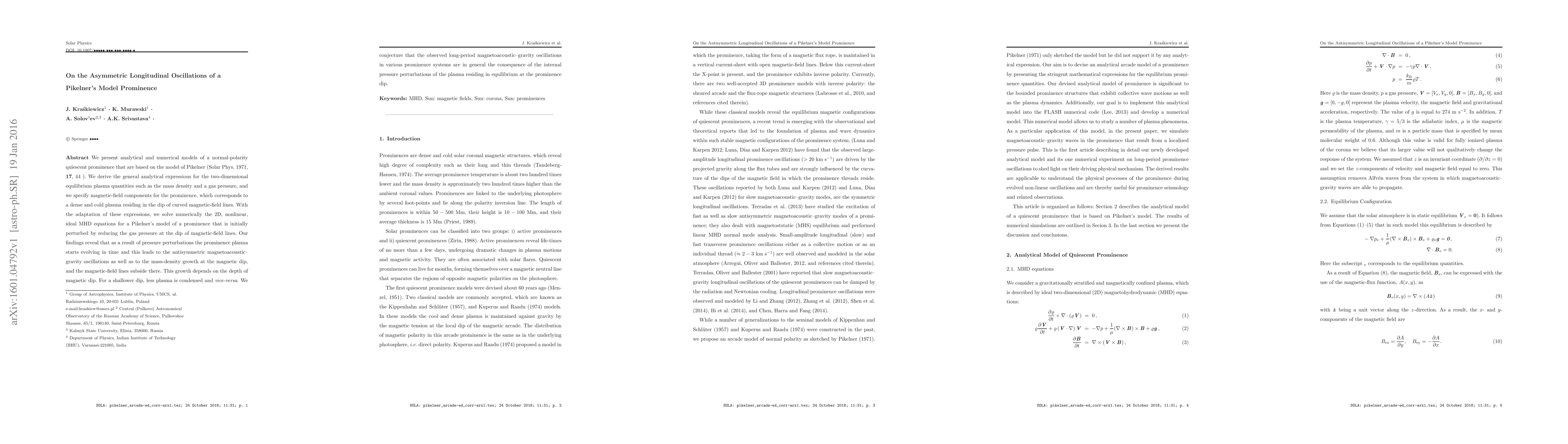 We present analytical and numerical models of a normal-polarity quiescent prominence that are based on the model of Pikelner (Solar Phys. 1971, 17, 44 ). We derive the general analytical expressions for the two-dimensional equilibrium plasma quantities such as the mass density and a gas pressure, and we specify magnetic-field components for the prominence, which corresponds to a dense and cold plasma residing in the dip of curved magnetic-field lines. With the adaptation of these expressions, we solve numerically the 2D, nonlinear, ideal MHD equations for a Pikelner's model of a prominence that is initially perturbed by reducing the gas pressure at the dip of magnetic-field lines. Our findings reveal that as a result of pressure perturbations the prominence plasma starts evolving in time and this leads to the antisymmetric magnetoacoustic--gravity oscillations as well as to the mass-density growth at the magnetic dip, and the magnetic-field lines subside there. This growth depends on the depth of magnetic dip. For a shallower dip, less plasma is condensed and vice-versa. We conjecture that the observed long-period magnetoacoustic-gravity oscillations in various prominence systems are in general the consequence of the internal pressure perturbations of the plasma residing in equilibrium at the prominence dip.