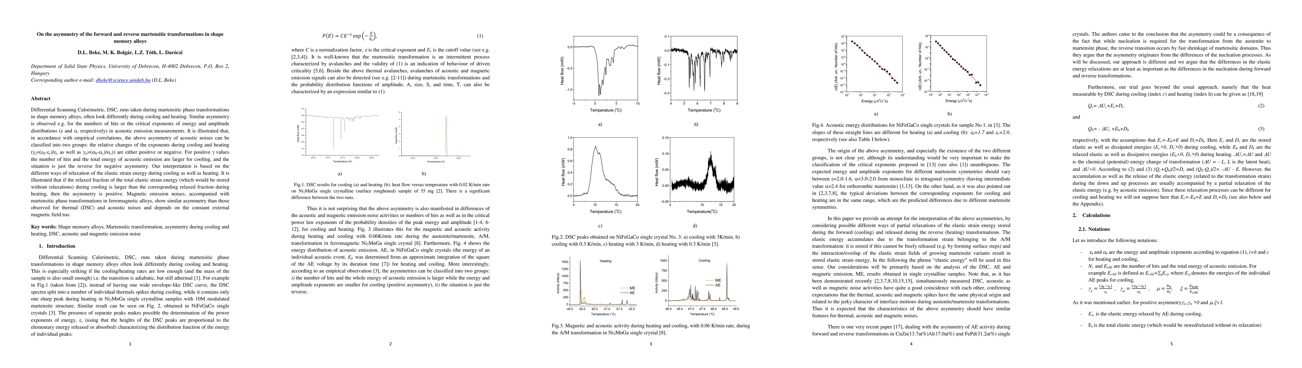 Research finds asymmetry in martensitic transformations of shape memory alloys during cooling and heating, which affects acoustic emission measurements. This asymmetry can indicate differences in relaxation of elastic strain energy during cooling and heating.