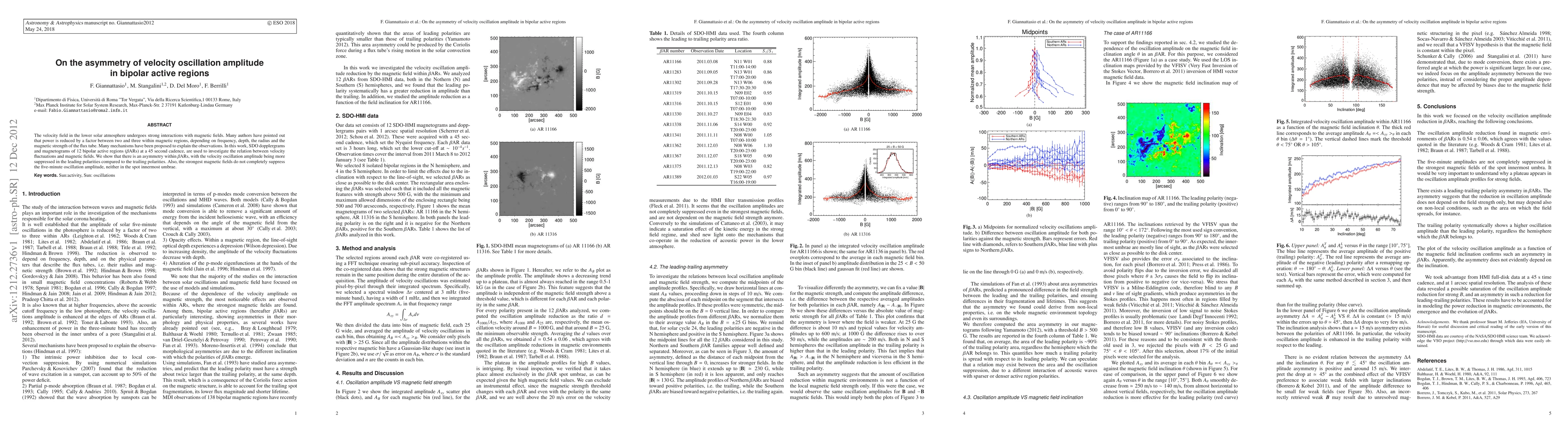 The velocity field in the lower solar atmosphere undergoes strong interactions with magnetic fields. Many authors have pointed out that power is reduced by a factor between two and three within magnetic regions, depending on frequency, depth, the radius and the magnetic strength of the flux tube. Many mechanisms have been proposed to explain the observations. In this work, SDO dopplergrams and magnetograms of 12 bipolar active regions ($\beta$ARs) at a 45 second cadence, are used to investigate the relation between velocity fluctuations and magnetic fields. We show that there is an asymmetry within $\beta$ARs, with the velocity oscillation amplitude being more suppressed in the leading polarities compared to the trailing polarities. Also, the strongest magnetic fields do not completely suppress the five-minute oscillation amplitude, neither in the spot innermost umbrae.