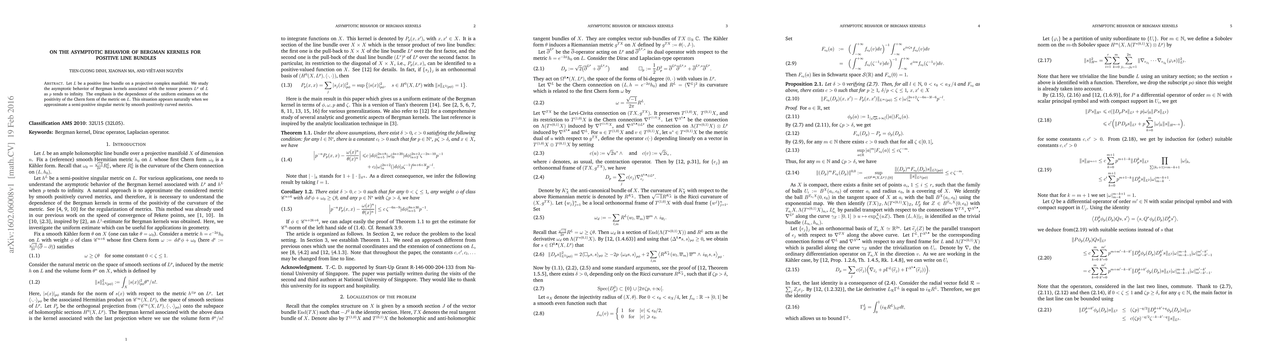 This paper studies how Bergman kernels for positive line bundles behave as they approach infinity, with a focus on their dependence on the positivity of the Chern form of the metric.